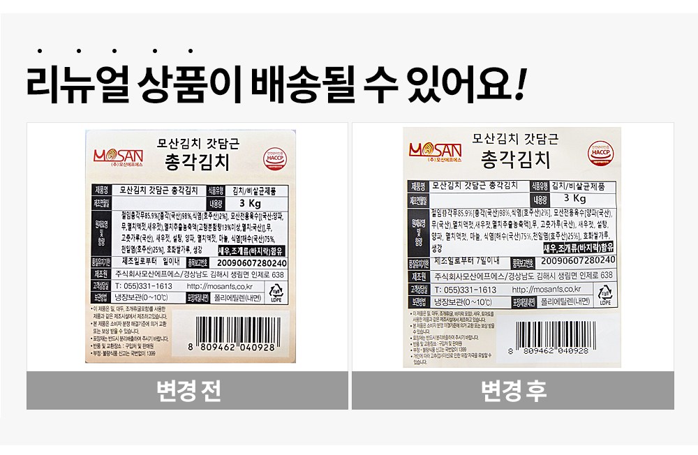 1. 발효 식품인 김치는 계절, 온도, 원재료의 상태에 따라 맛에 차이가 생길 수 있어요. 아이스팩과 함께 보내드리지만, 더운 날씨(하절기)에는 배송 중 숙성될 수 있습니다. 수령 즉시 냉장고에 보관해주세요.