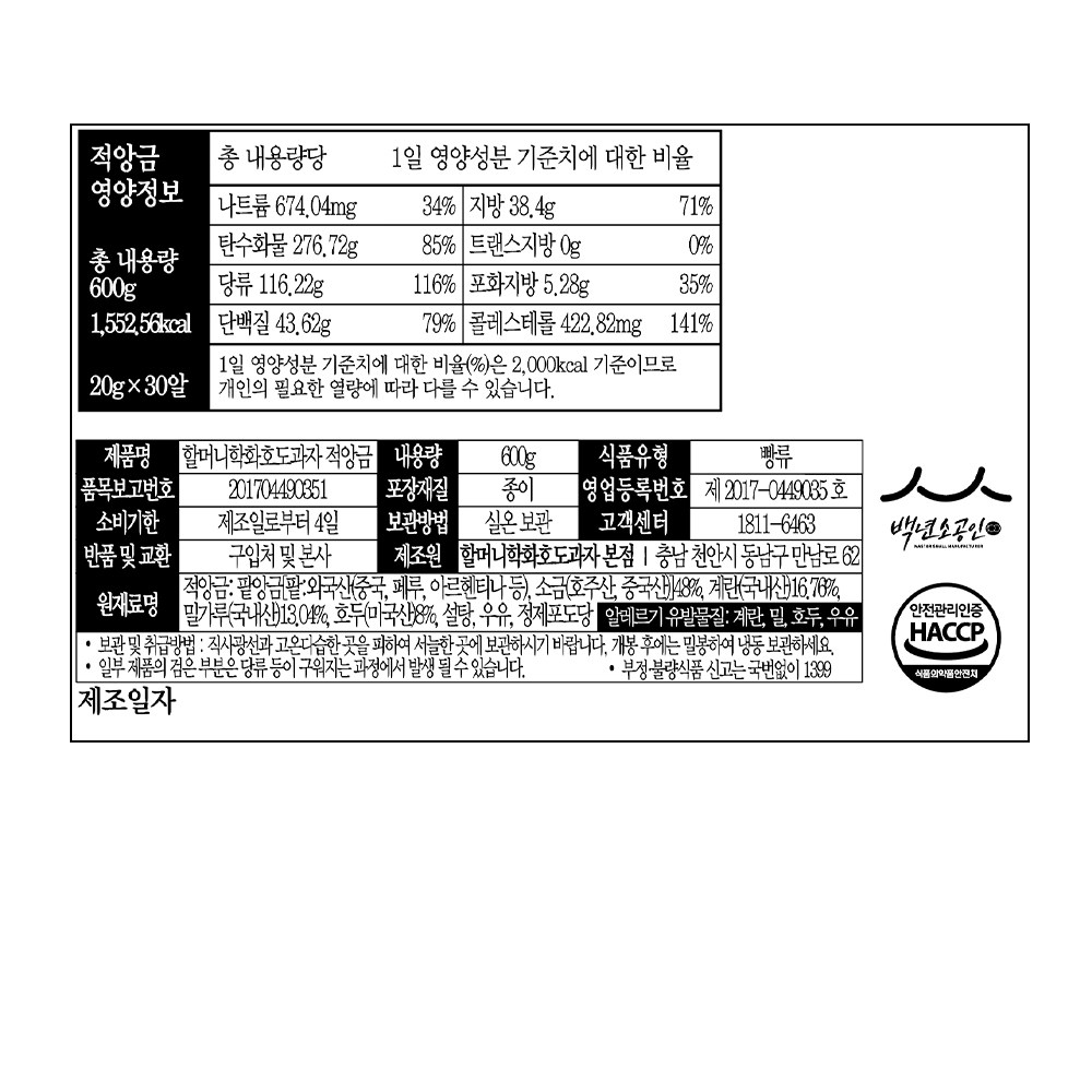 - 제조년월일: 필수표기정보 기재란 참조
