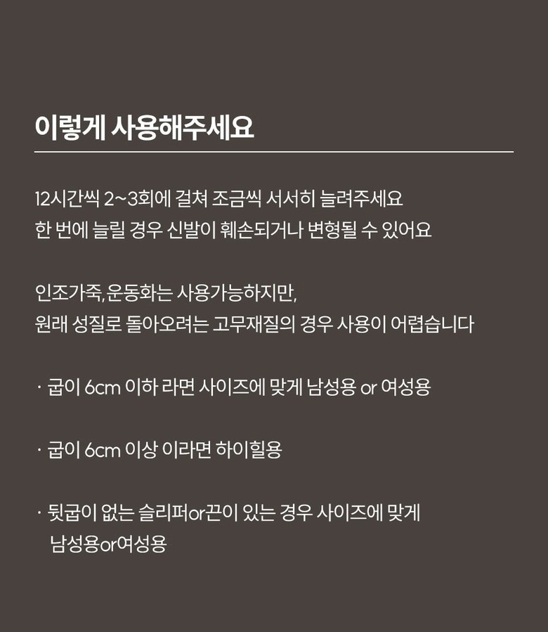 | 품명 및 모델명 | 생활살림꾼 구두 신발 발볼 늘리기 | 인증/허가 사항 | 해당없음 |