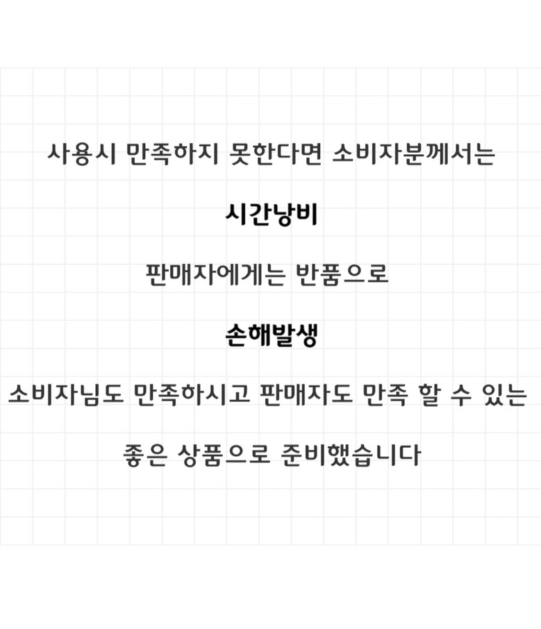 - ㆍ모니터 해상도의 차이로 인해 색상이나 이미지가 실제와 달라, 고객이 단순 변심으로 교환/반품을 무료로 요청하는 경우