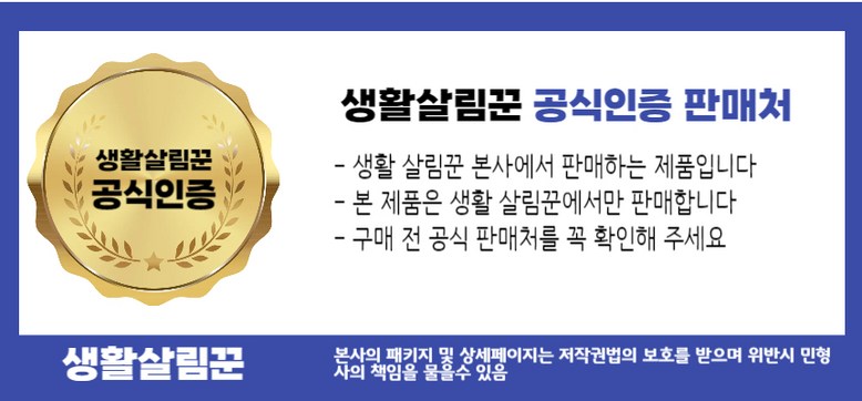 | 제조국(원산지) | 중국OEM | 제조자(수입자) | 생활살림꾼 협력사 (업체 미제공으로 정확한 제조사, 수입자 알 수 없음) |