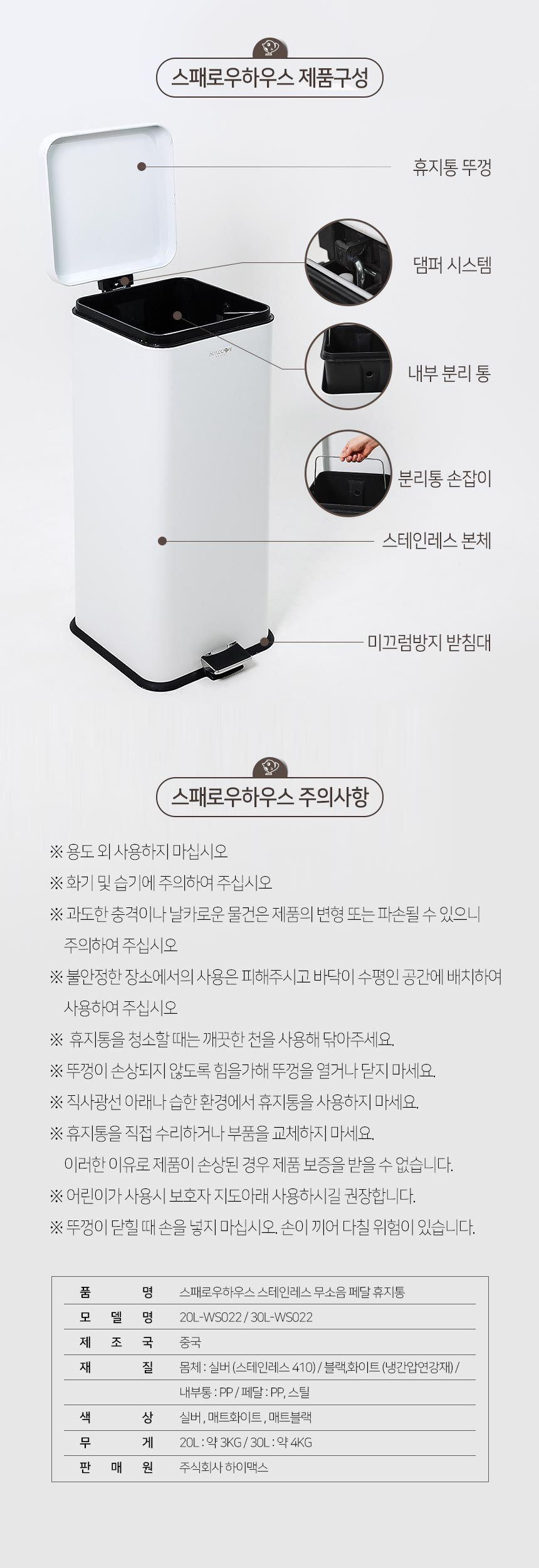 | 품명 및 모델명 | 스패로우하우스 스테인레스 페달 휴지통 20L | 인증/허가 사항 | 해당없음 |
