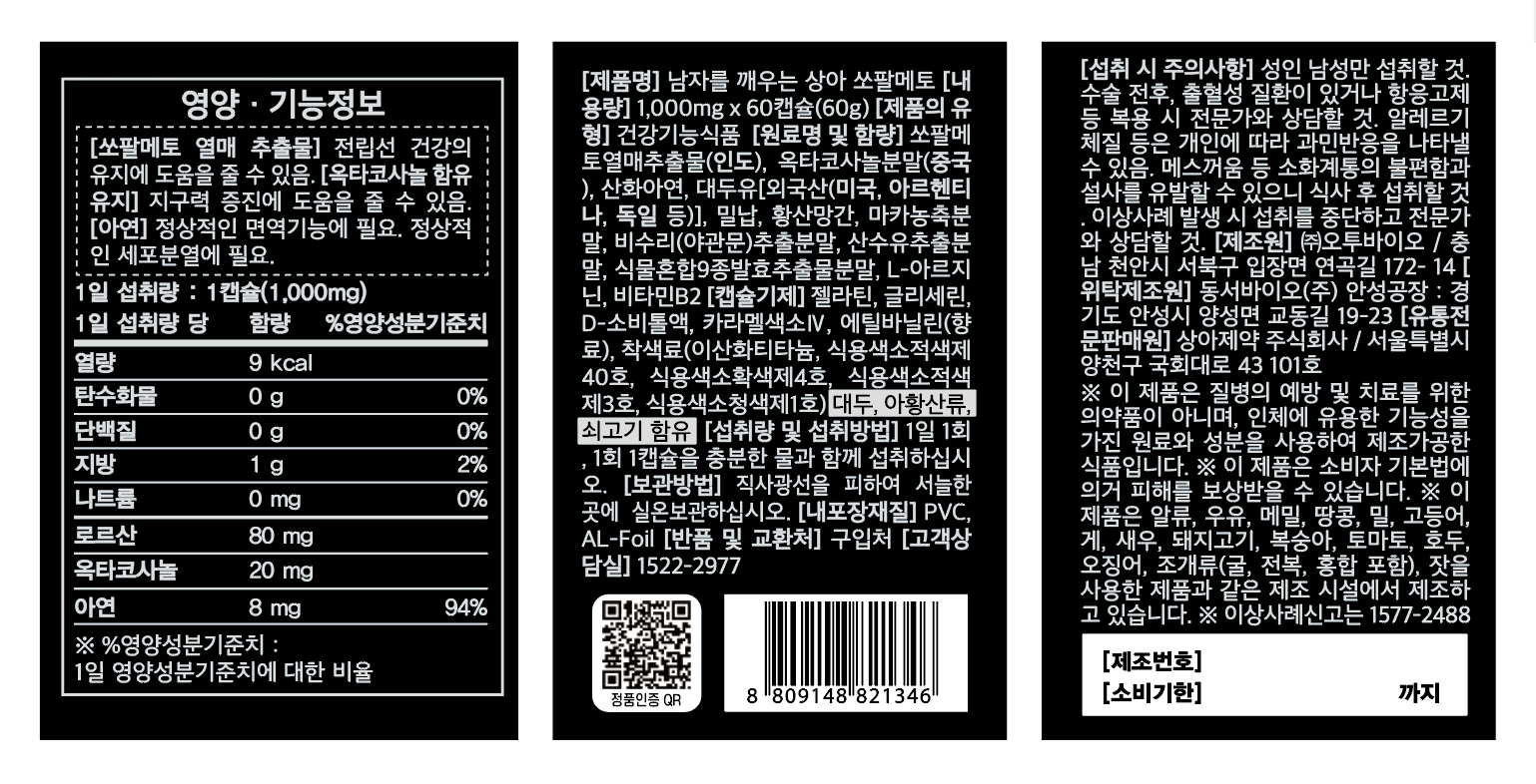 | 소비기한 및 보관방법 | 소비기한(또는 유통기한) : 2028년 03월 19일 이거나 그 이후인 상품 제조년월일 : 2026년 03월 21일 이후인 제조상품 보관방법: 컨텐츠 참조 | 포장단위별 내용물의 용량(중량), 수량 | 60정 x 4개 |