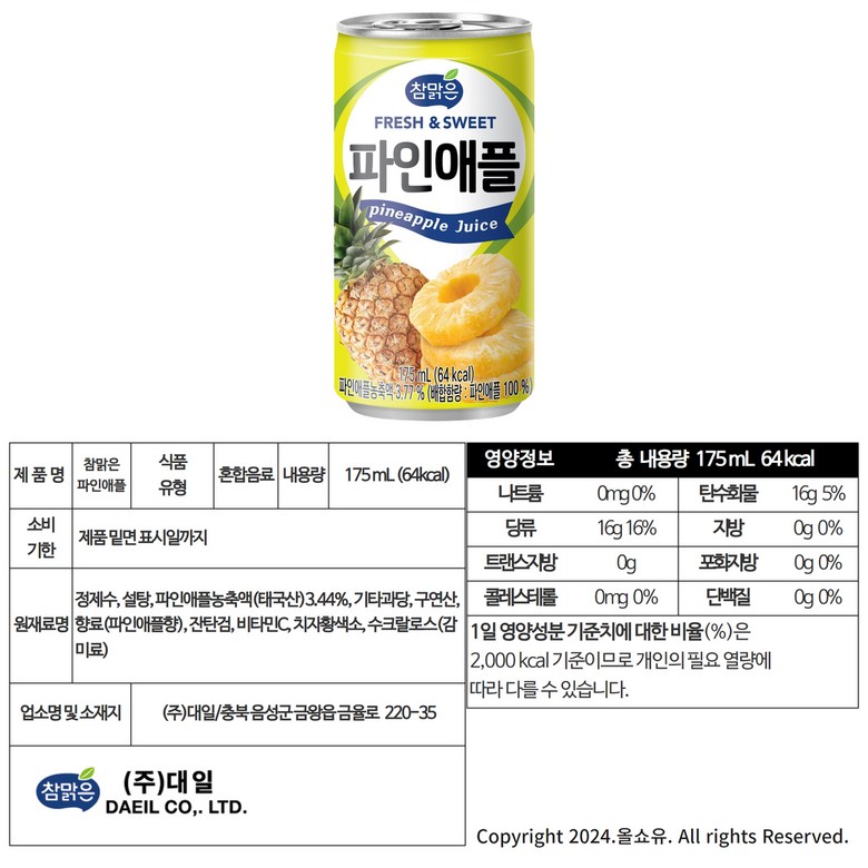 | 생산자 및 소재지 | 상품 상세페이지 참조 | 제조연월일, 소비기한 또는 품질유지기한 | 상품 상세페이지 참조 |