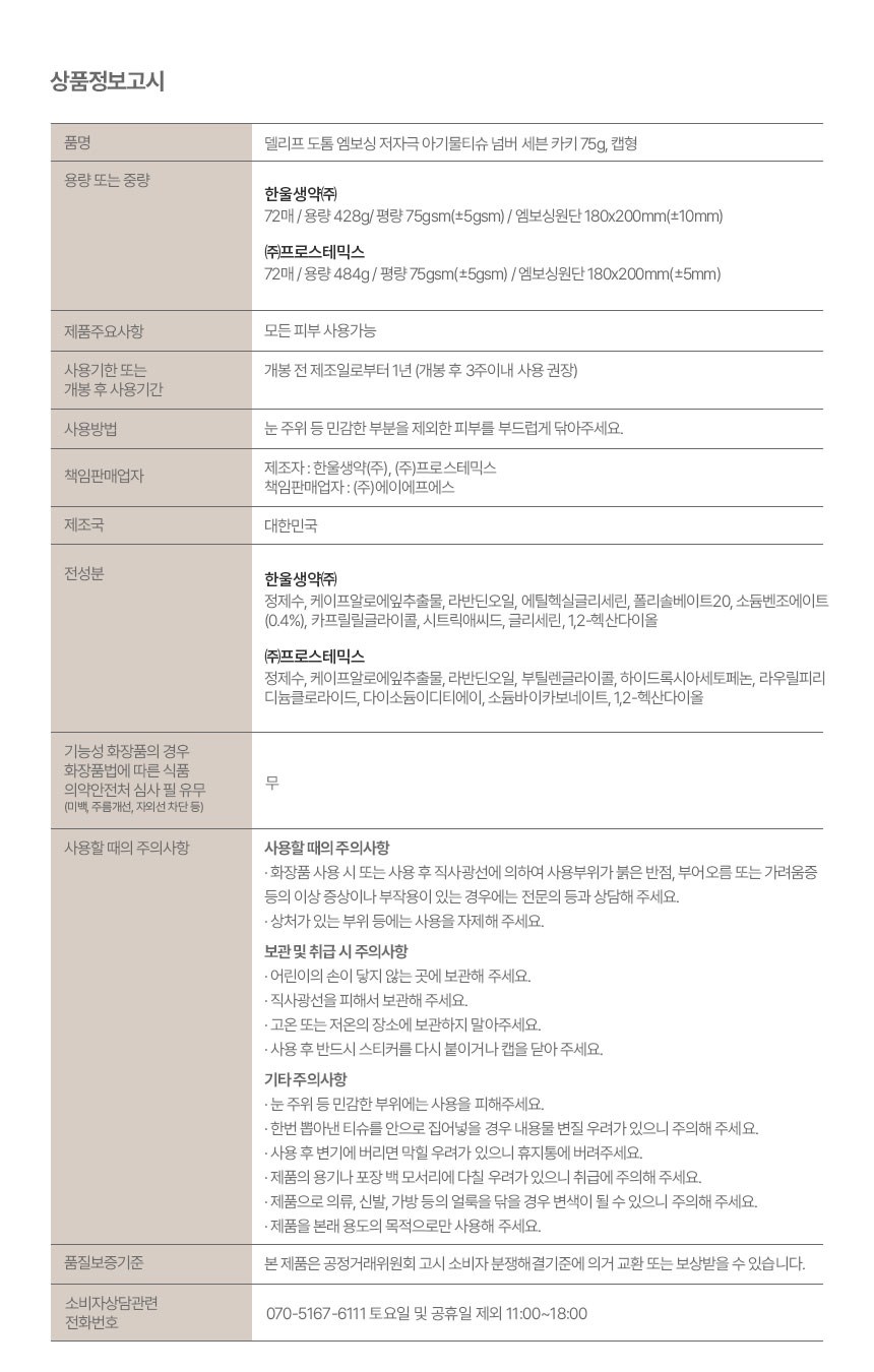 | 용량(중량) | 컨텐츠 참조 | 제품 주요 사양 | 모든 피부용 |