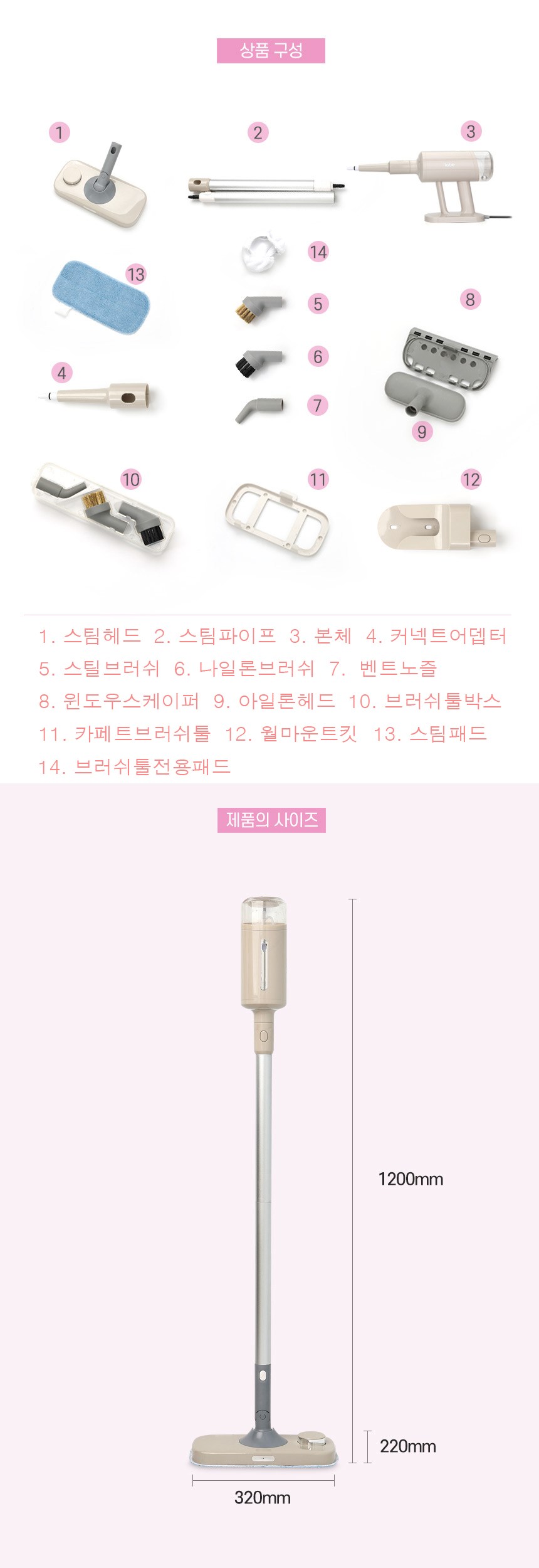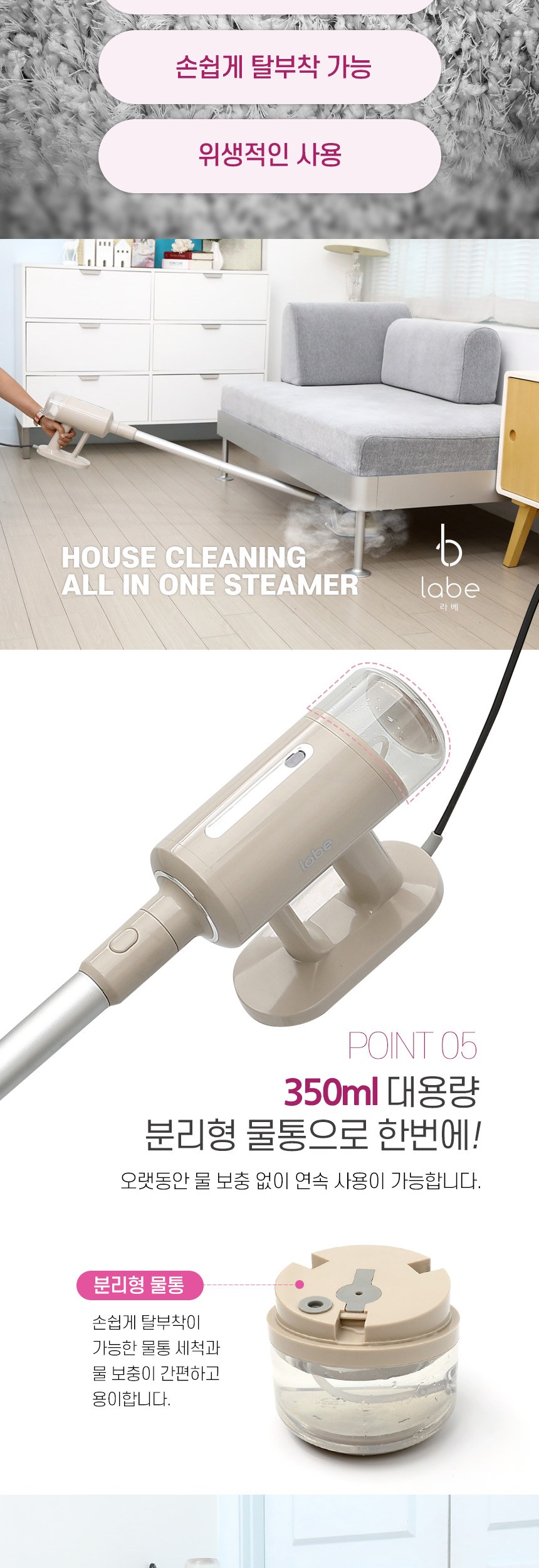 - 스팀청소기 기능: 스팀+물걸레