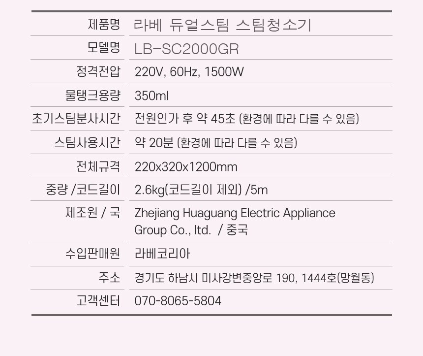 | 품명 및 모델명 | 듀얼 스팀청소기 / LB-SC2000GR | KC 인증정보 | R-R-Lbe-LB-SC2000, HU072040-22035B |
