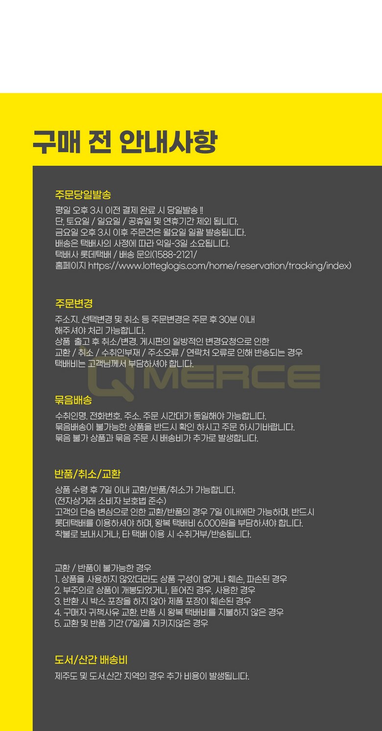 - ㆍ교환/반품에 관한 일반적인 사항은 판매자가 제시사항보다 관계법령이 우선합니다.