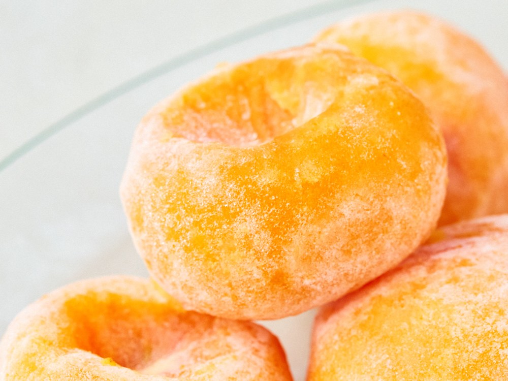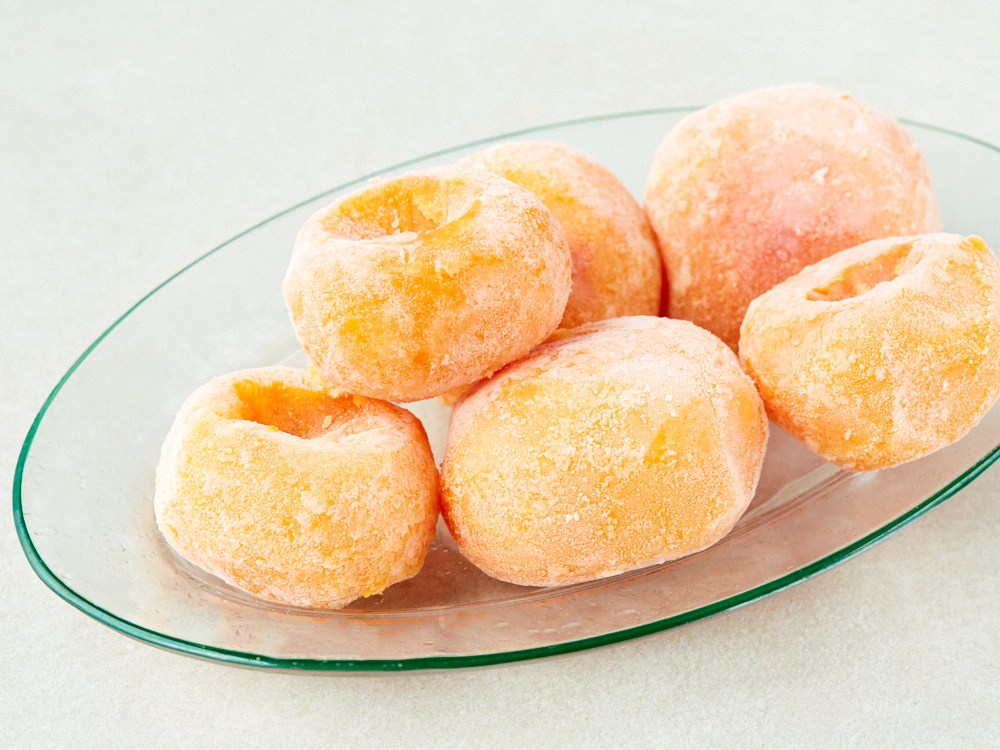 부드러운 홍시를 꽁꽁 얼렸어요. 꼭지와 껍질이 손질되어 있어 간편하게 드실 수 있답니다. 살짝 해동해 아이스크림처럼 즐겨도 좋고, 다양한 음료로 만들어도 좋아요. 셔벗, 스무디 등 원하는 형태로 홍시의 달달함을 즐겨보세요.