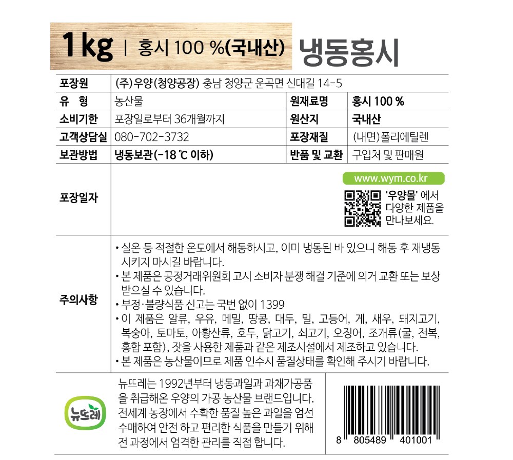 | 품목 또는 명칭 | 냉동홍시 | 포장단위별 내용물의 용량(중량),수량,크기 | 컨텐츠 참조 |