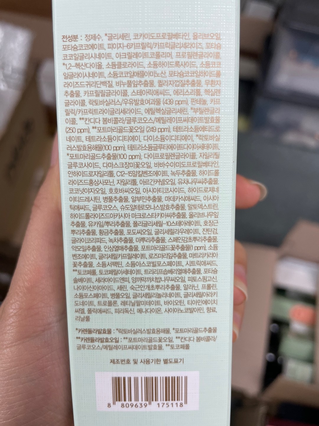 | 화장품제조업자, 화장품책임판매업자 및 맞춤형화장품판매업자 | (주)한국화장품제조 / ㈜엔앤비랩 | 제조국 | 한국 |