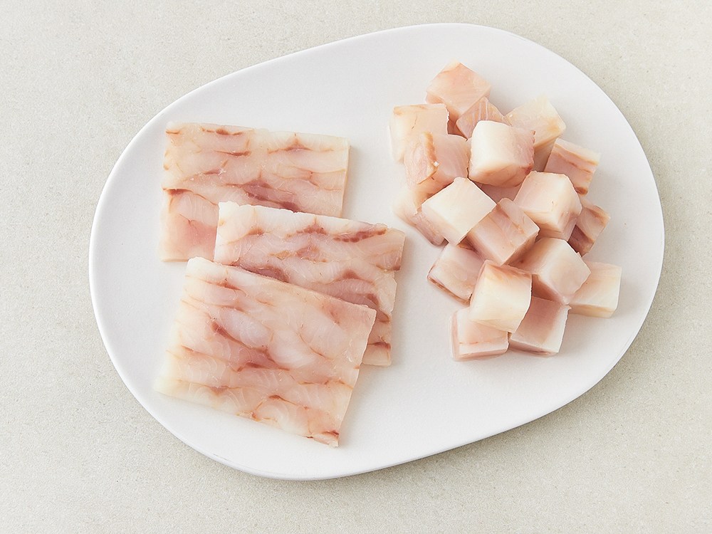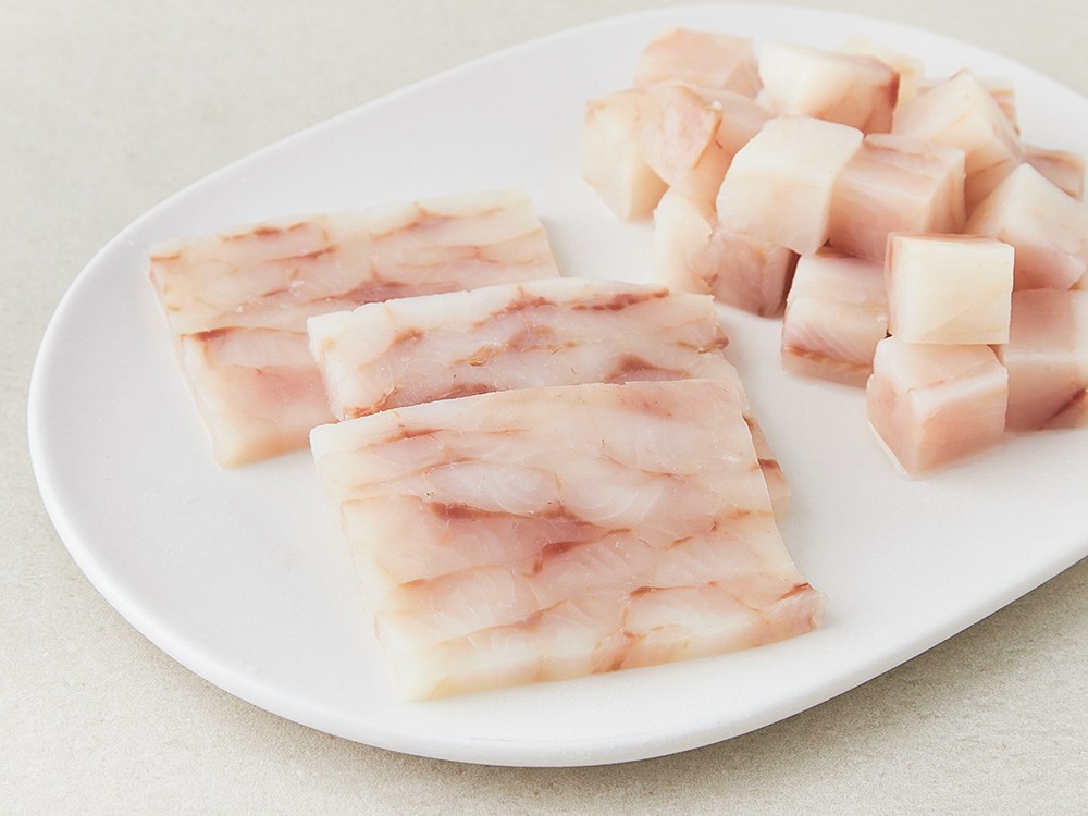 요리의 용도에 맞춰 자유롭게 활용하실 수 있도록 두 가지 형태로 손질한 명태예요. 한입 크기의 큐브 형태와 넓적한 슬라이스 형태로 구성되어 있는데요. 가시가 말끔하게 제거되어 있어 간편하게 활용하실 수 있답니다. 전을 부칠 때는 슬라이스 형태를, 강정이나 찌개를 만드실 때는 큐브 형태를 선택해보세요. 담백한 풍미 덕분에 어떤 요리와도 조화롭게 어우러져요.