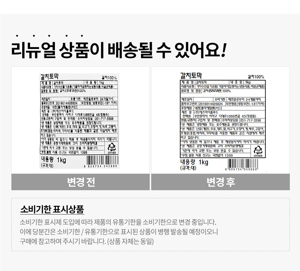 다만, 판매자의 제시사항이 관계법령보다 소비자에게 유리한 경우에는 판매자 제시사항이 적용됩니다.
