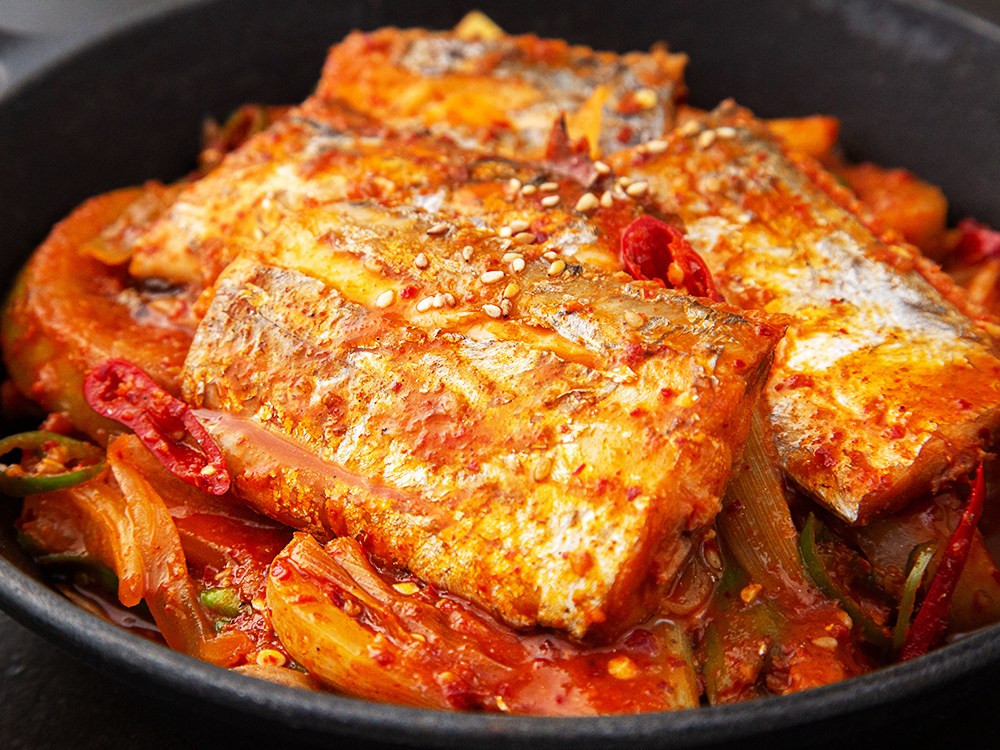 5. 갈치, 야채, 양념장을 모두 넣어 자박하게 졸여주세요.