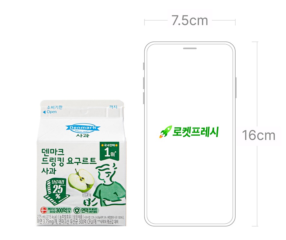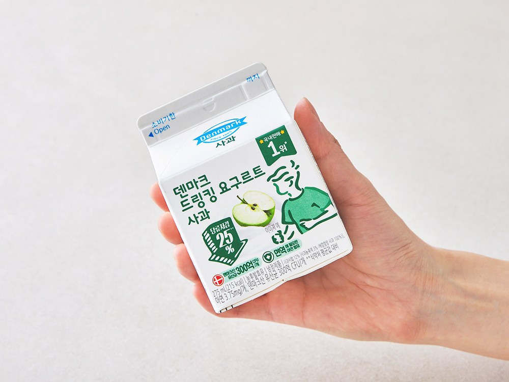유제품 전문 브랜드 덴마크가 선보이는 사과맛 드링킹 요구르트를 만나보세요. 원유와 유크림을 사용해 입안 가득 퍼지는 고소한 풍미가 일품인데요. 여기에 달콤한 사과시럽을 넣어 텁텁함 없이 산뜻한 끝맛을 자랑하죠. 사과맛 드링킹 요구르트로 출출한 오후, 기분 좋은 간식 시간을 즐겨보세요.