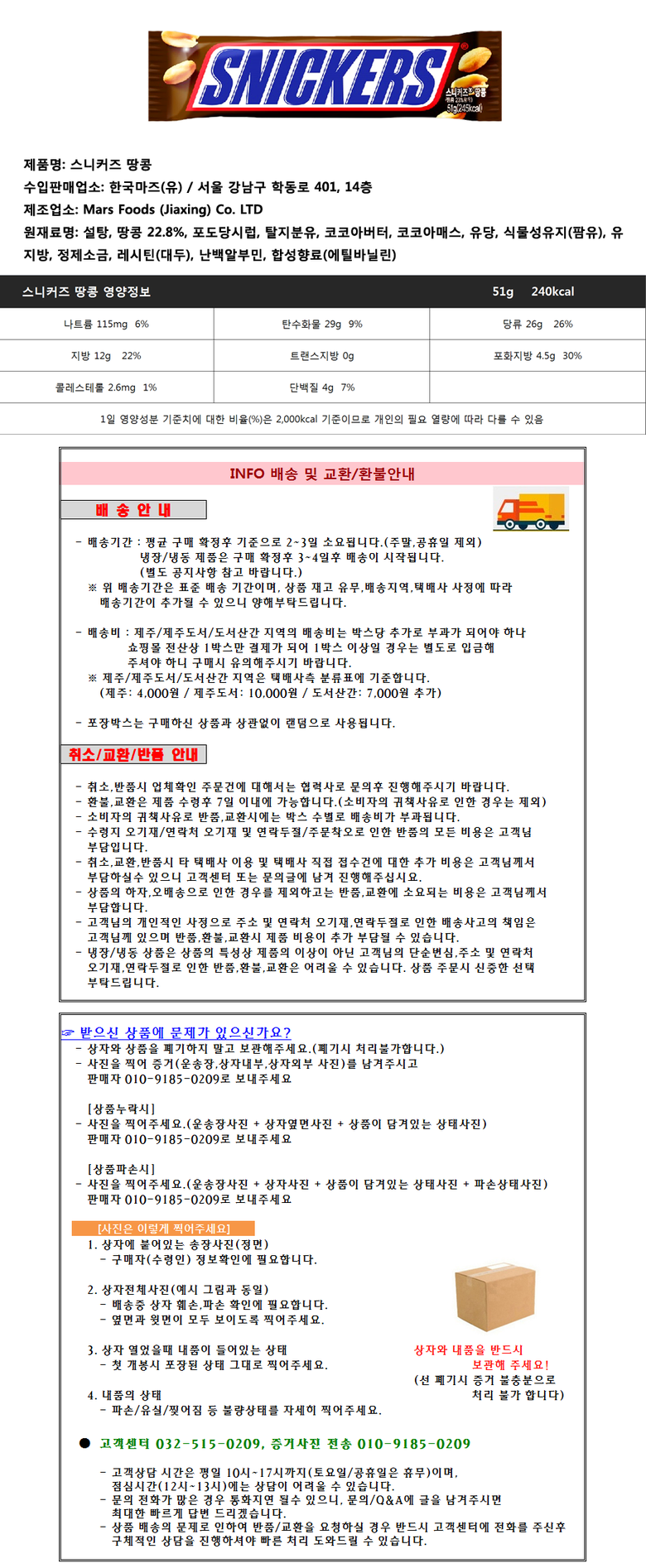 | 제품명 | 상품 상세페이지 참조 | 식품의 유형 | 상품 상세페이지 참조 |