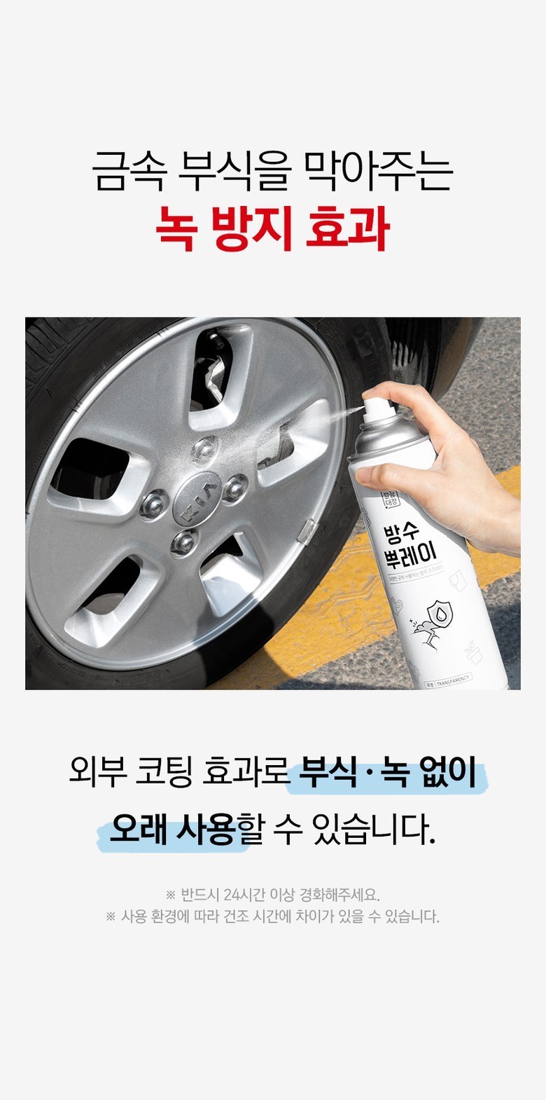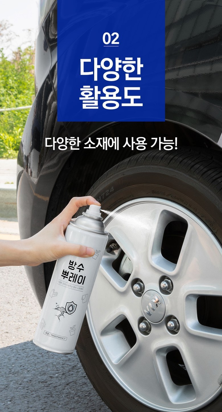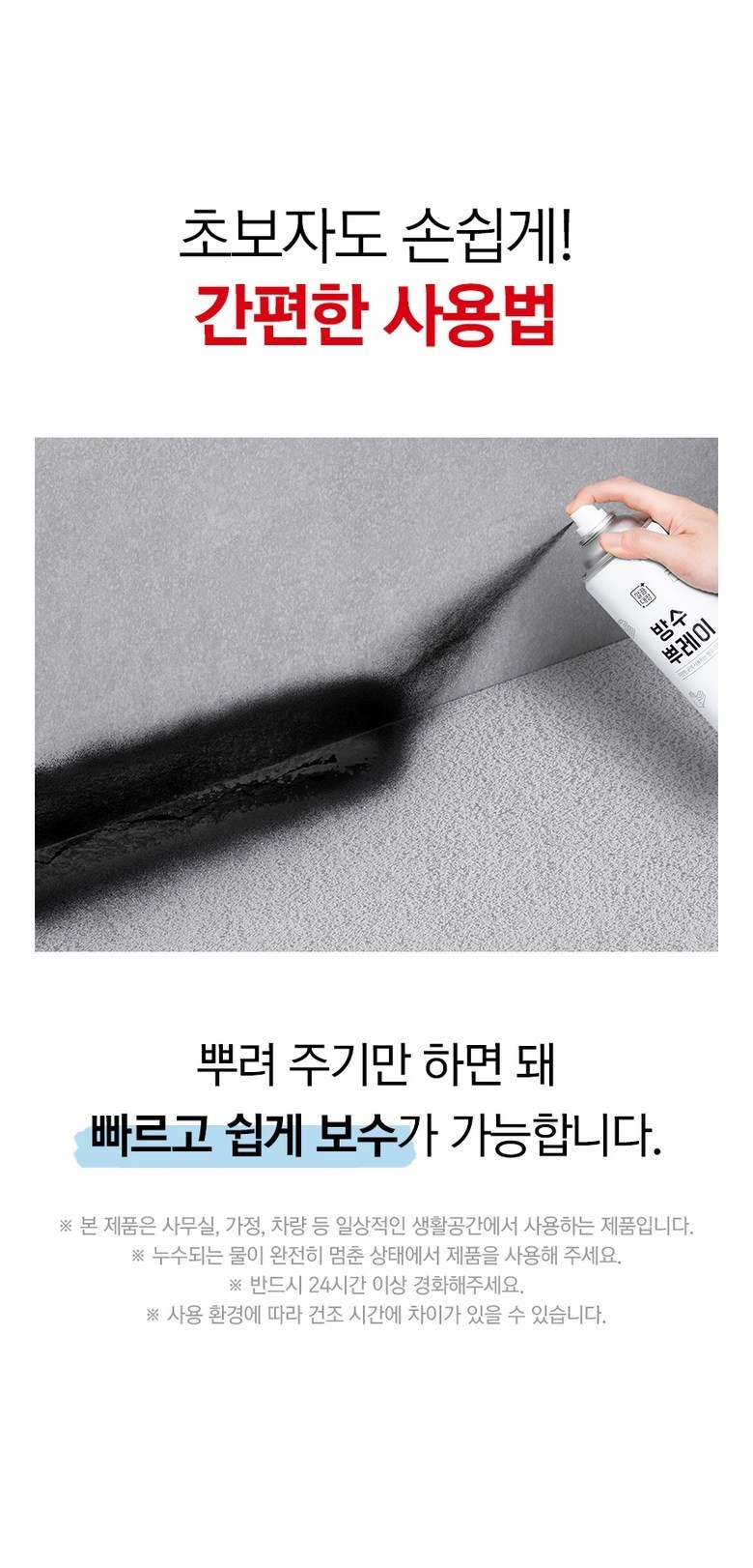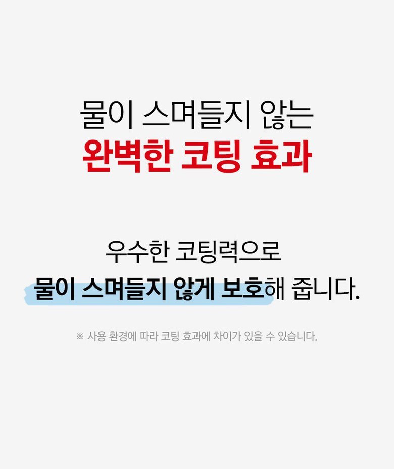 | 품목 및 제품명 | 특수목적코팅제,접합제,녹 방지제/방수뿌레이(투명) | 용도(표백제의 경우 계열을 함께표시) 및 제형 | 일반용-발수용,일반용-오염 방지용,일반용-표면보호용,자동차용-외부용,일반용-방수용,흠집충진용,이음매접합용,틈새충진용,금속용,차량용/분사형-스프레이형 |