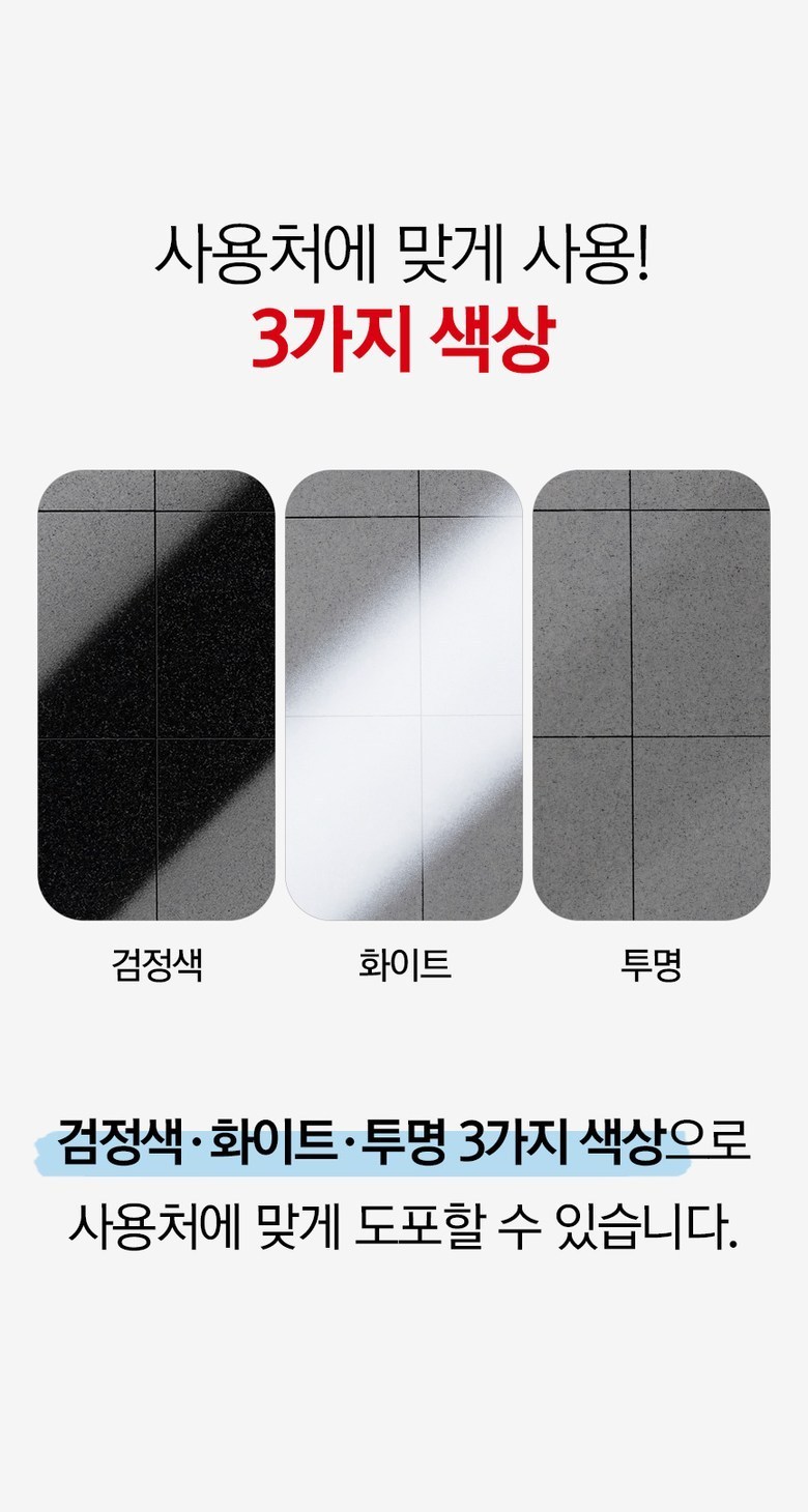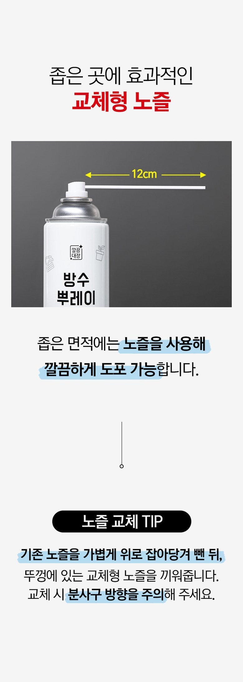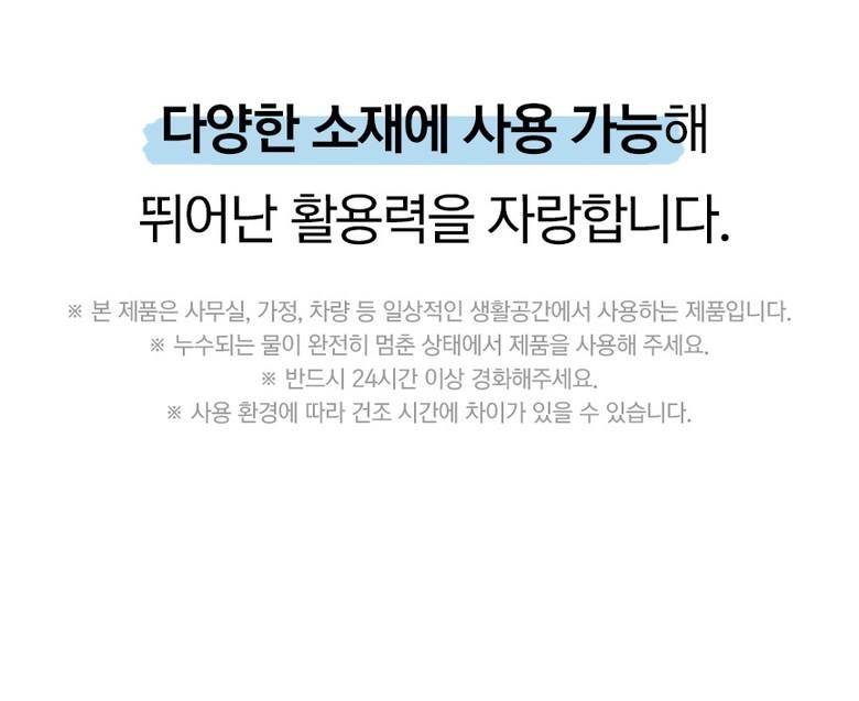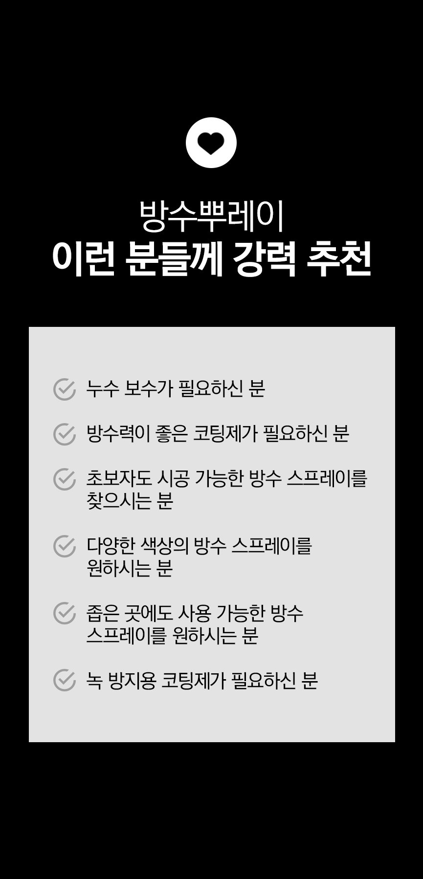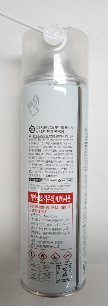 | 품목 및 제품명 | 특수목적코팅제,접합제,녹 방지제/방수뿌레이(투명) | 용도(표백제의 경우 계열을 함께표시) 및 제형 | 일반용-발수용,일반용-오염 방지용,일반용-표면보호용,자동차용-외부용,일반용-방수용,흠집충진용,이음매접합용,틈새충진용,금속용,차량용/분사형-스프레이형 |