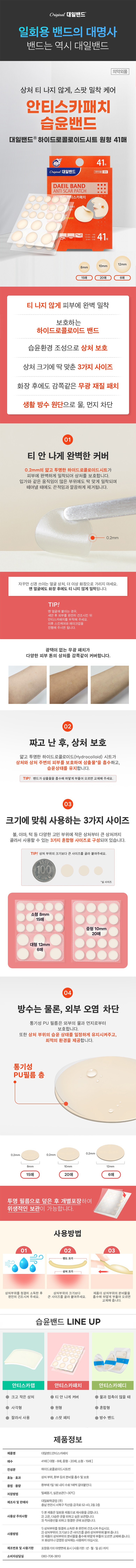 | 품명 및 모델명 | 대일밴드안티스카패치 | 인증/허가 사항 | 의약외품 |