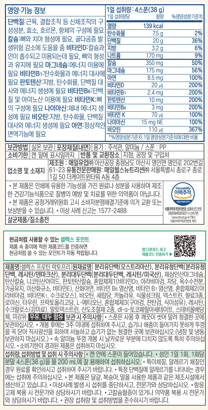 - 건강기능식품: 인증 있음