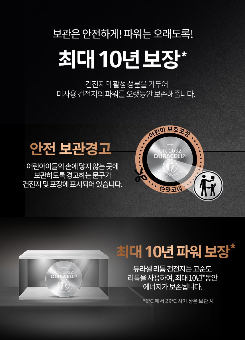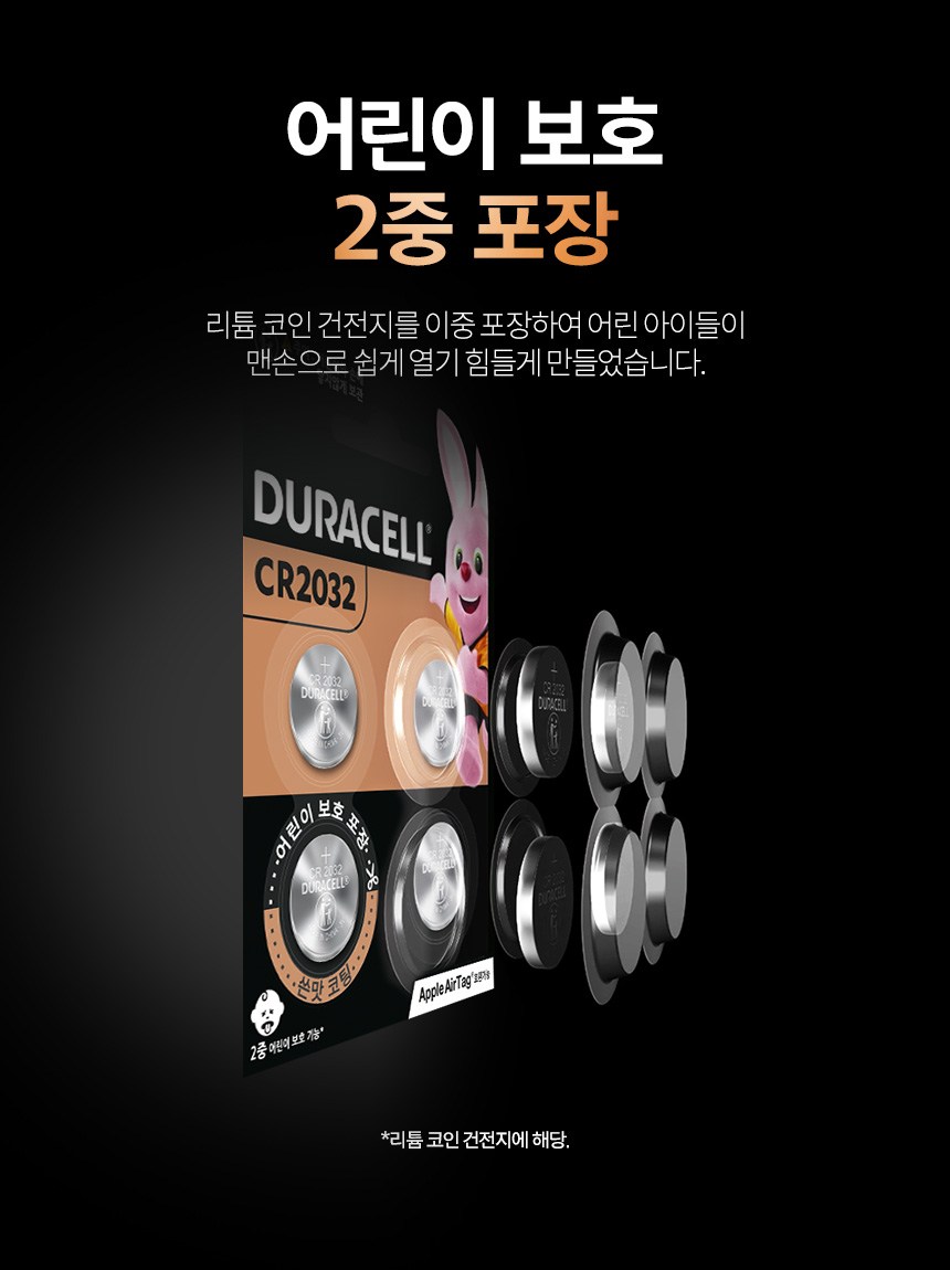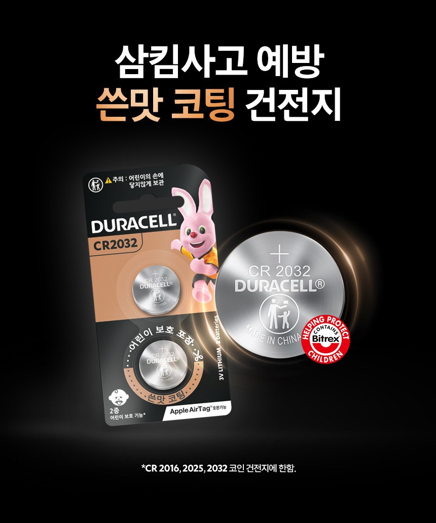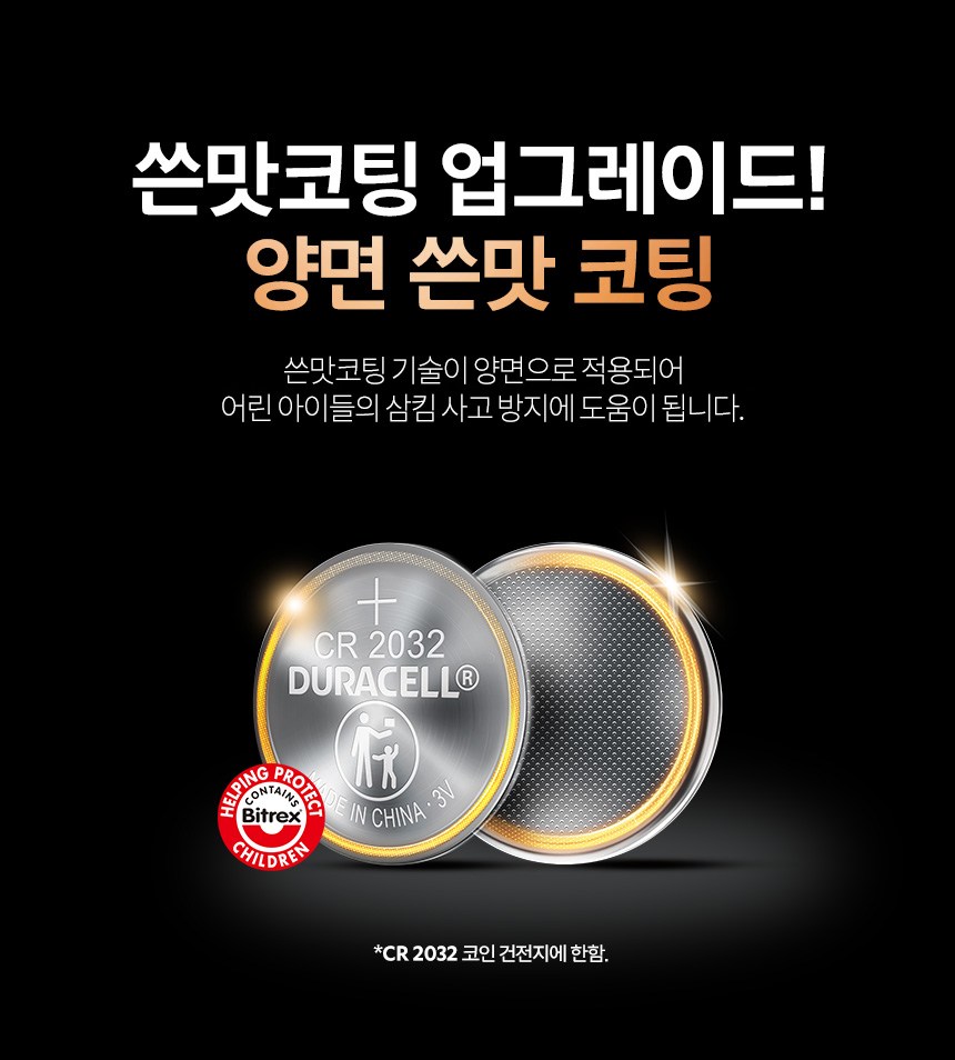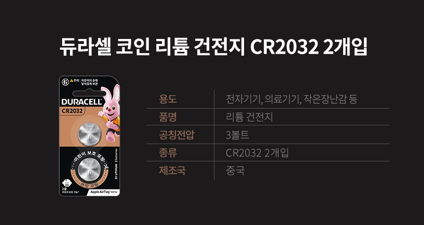 | 품명 및 모델명 | 듀라셀 리튬 코인 건전지 CR2032 | 인증/허가 사항 | 해당없음(14세 이상) |