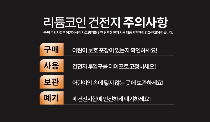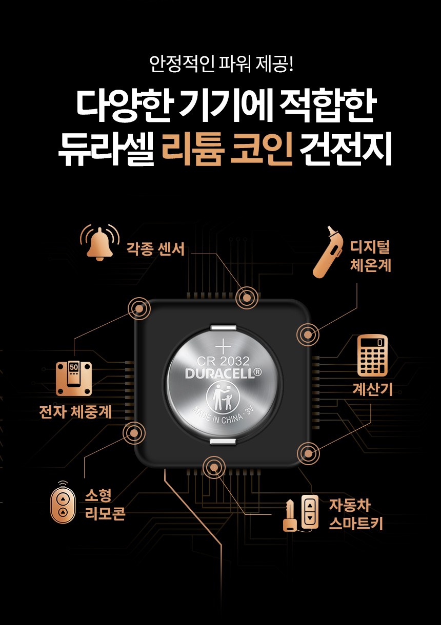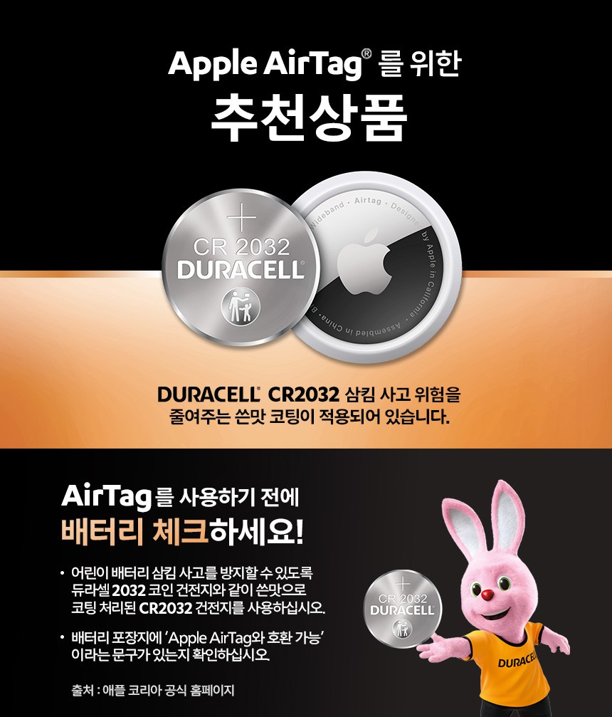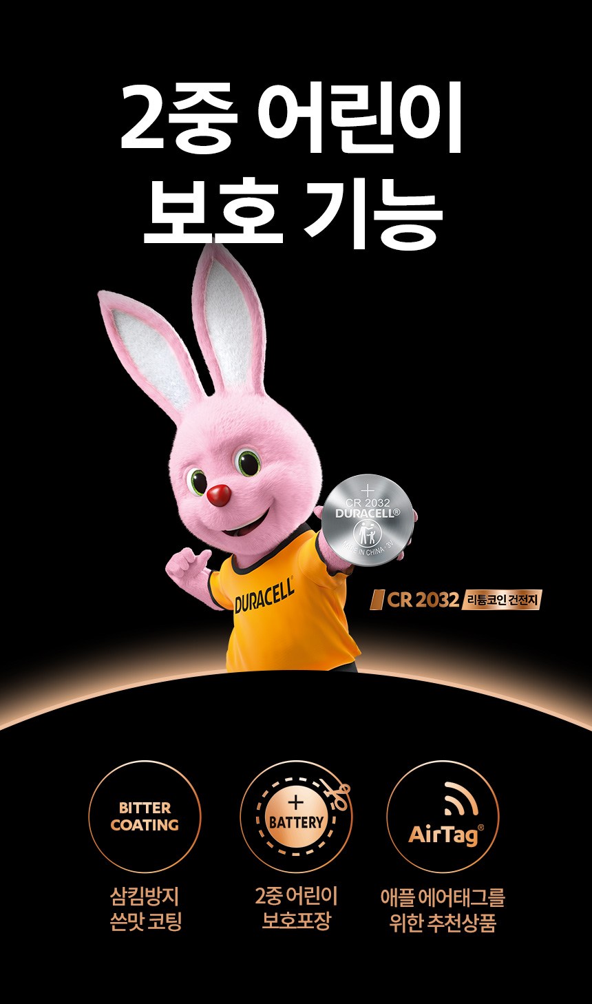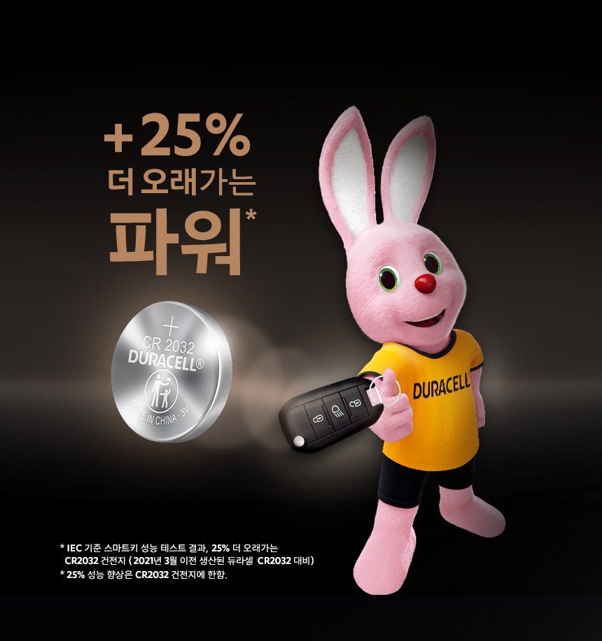 | 품명 및 모델명 | 듀라셀 리튬 코인 건전지 CR2032 | 인증/허가 사항 | 해당없음(14세 이상) |