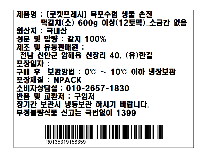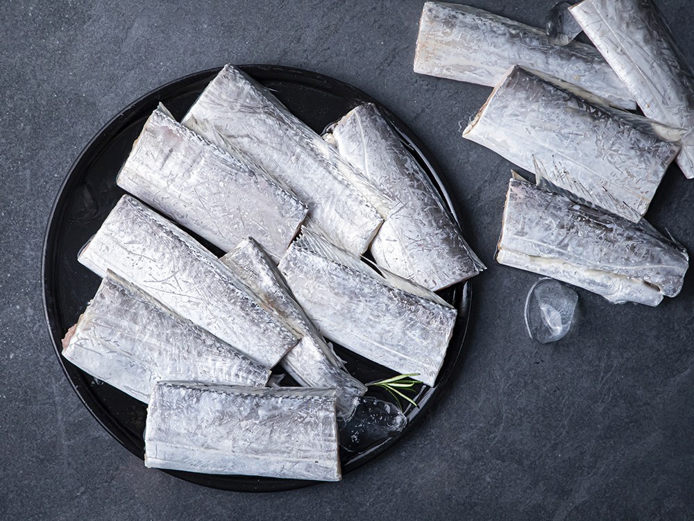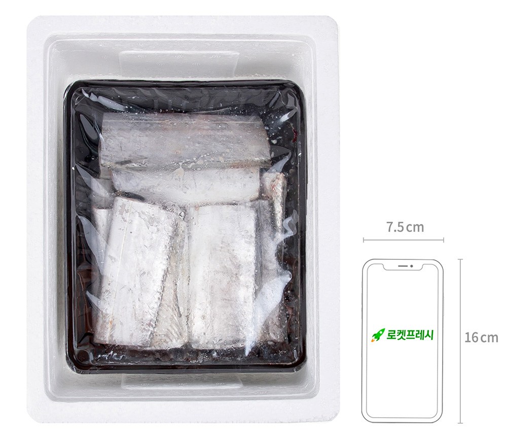 몸통 윗부분이 먹물로 물든 듯 흑빛을 띠고 있는 먹갈치예요. 탄력 있는 식감과 고소한 감칠맛이 일품이죠. 먹기 좋게 토막 내어 담았으니 간편하게 요리해보세요. 내장이 제거되어 있어 따로 손질할 필요도 없답니다. 소금을 솔솔 뿌려 노릇노릇 굽기만 해도 맛있어요.