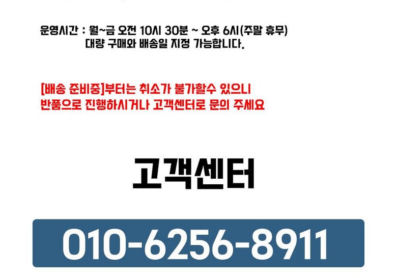- ㆍ모니터 해상도의 차이로 인해 색상이나 이미지가 실제와 달라, 고객이 단순 변심으로 교환/반품을 무료로 요청하는 경우