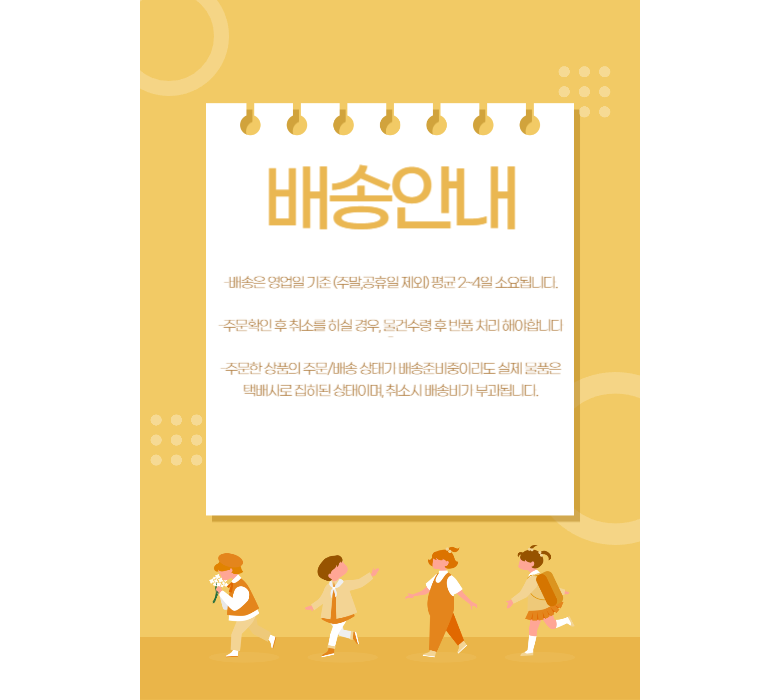 - ㆍ모니터 해상도의 차이로 인해 색상이나 이미지가 실제와 달라, 고객이 단순 변심으로 교환/반품을 무료로 요청하는 경우