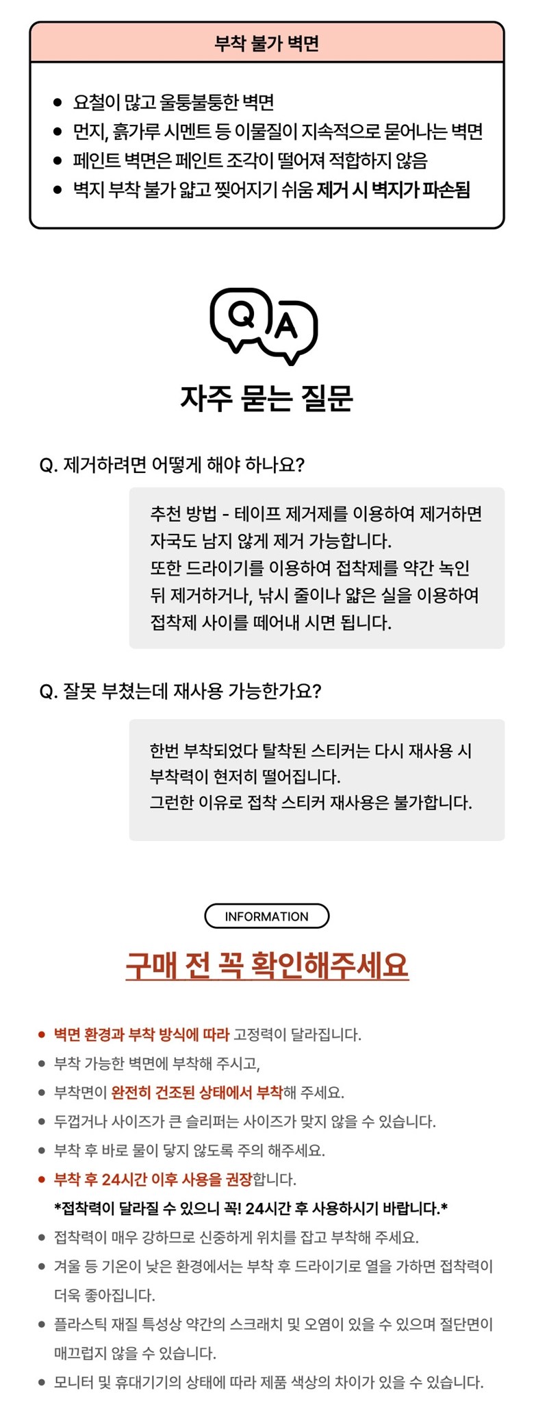 - 가격, 판매자, 교환/환불 및 배송 등 해당 상품 자체와 관련 없는 문의는 고객센터 내 1:1 문의하기를 이용해주세요.
