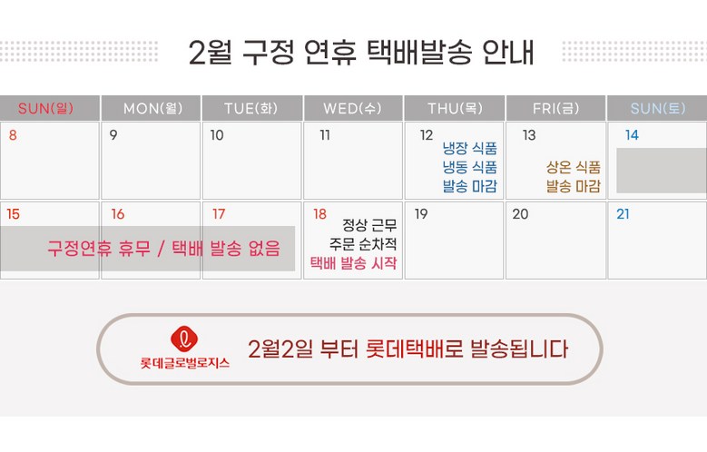 | 배송사 | 롯데택배 | ||
