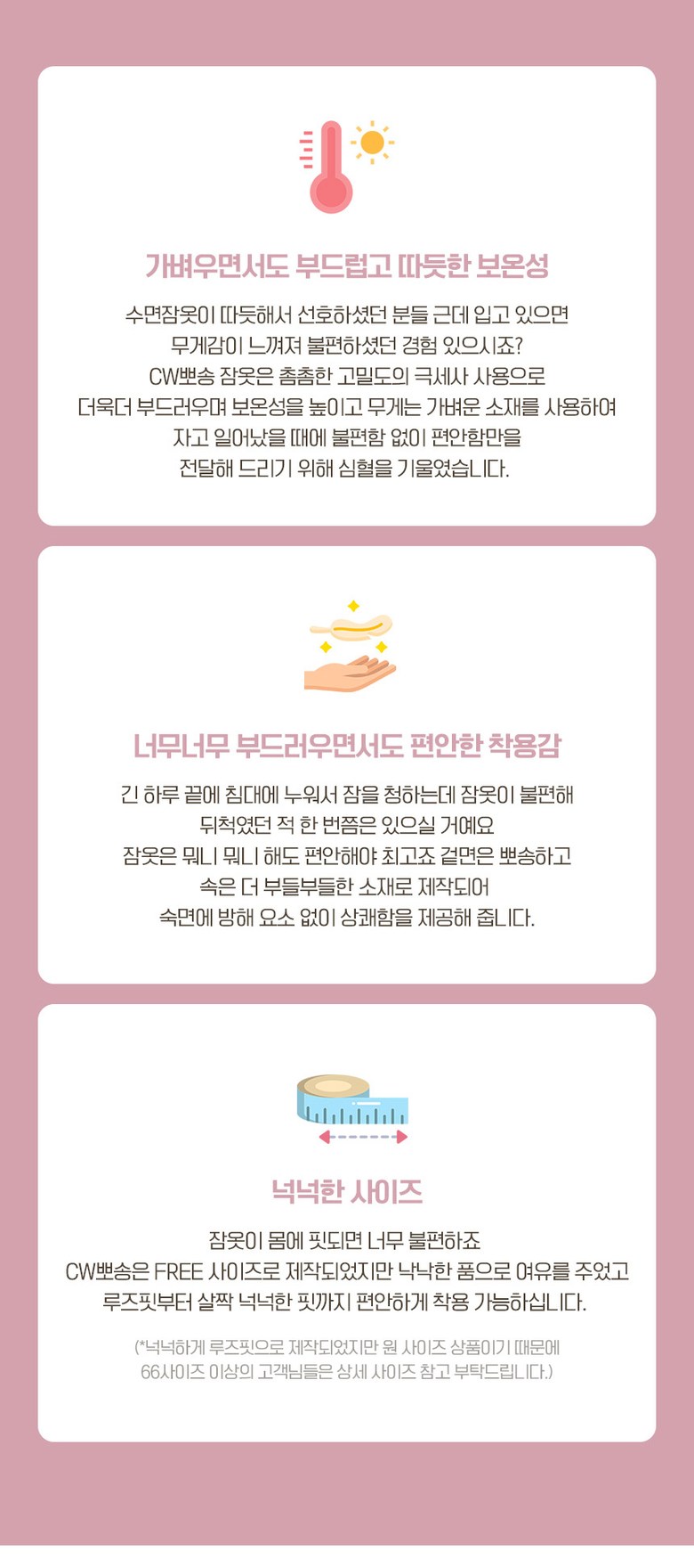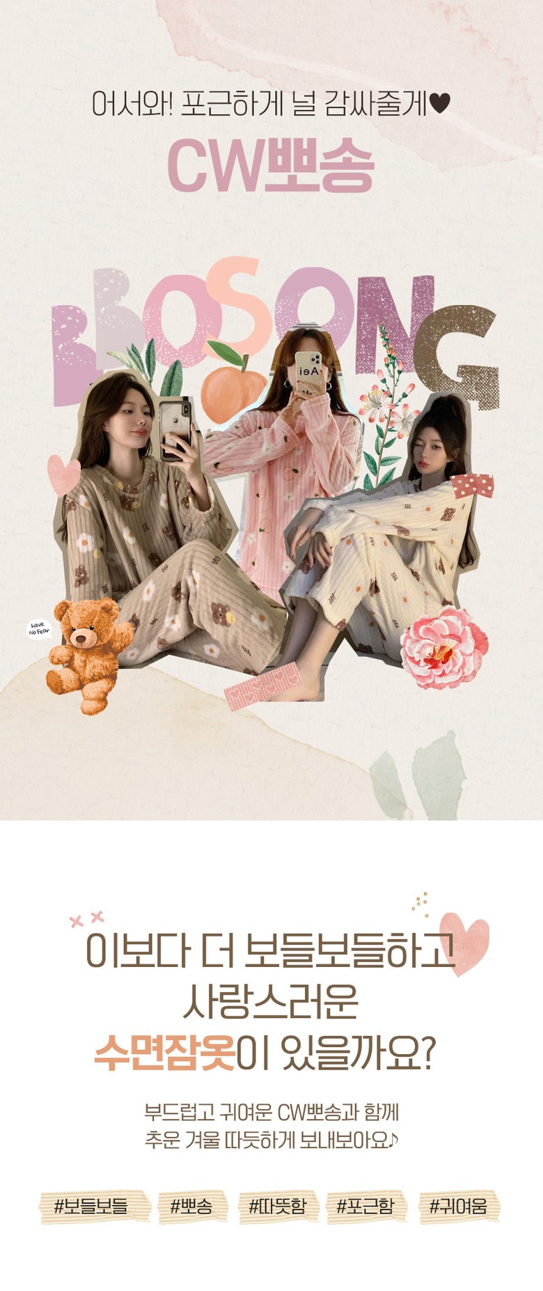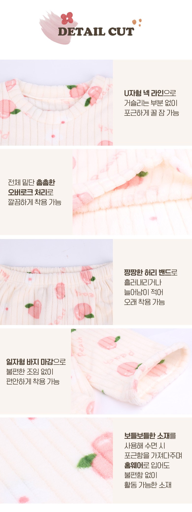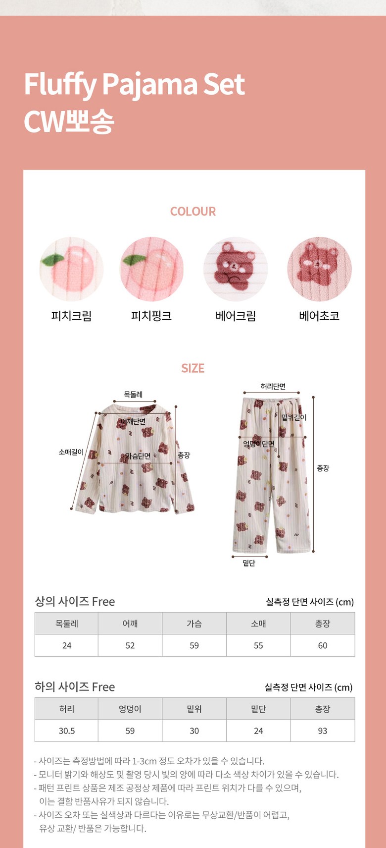 | 제품 소재 | 폴리에스테르 100% | 색상 | 피치크림, 화이트계열, 피치핑크, 핑크계열, 베어크림, 베이지계열, 베어초코, 브라운계열 |