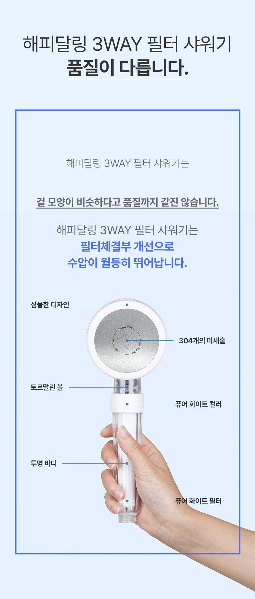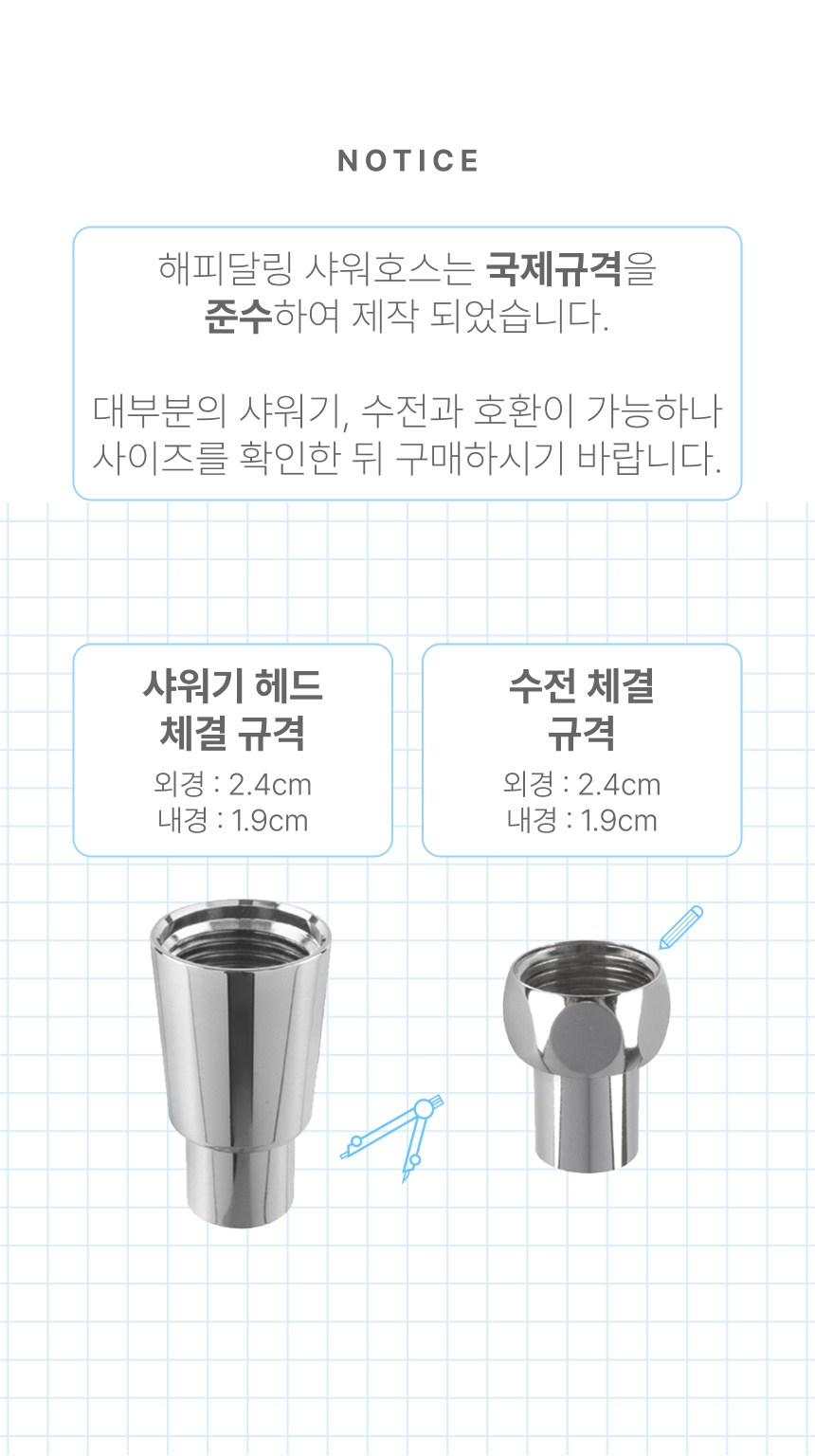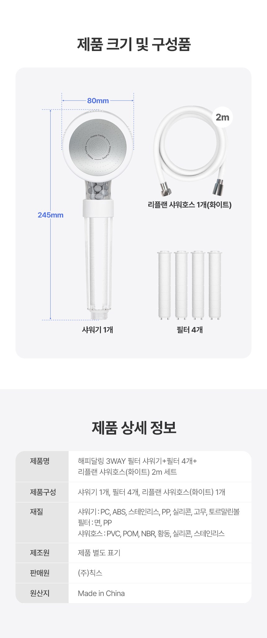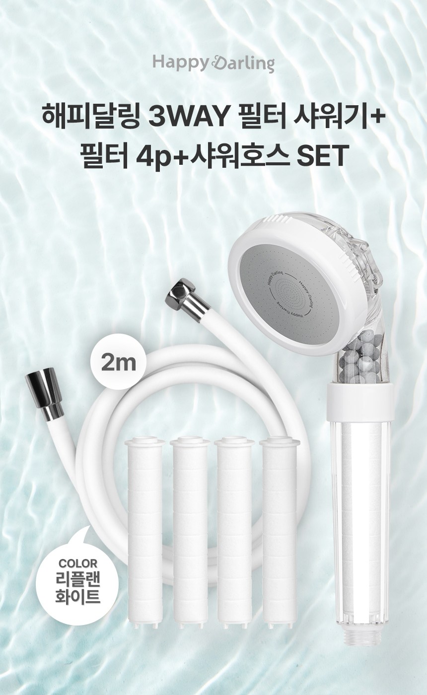 | 품명 및 모델명 | 해피달링 3WAY샤워기 세트 + 해피달링 리플랜 샤워호스 2m | 인증/허가 사항 | 샤워기세트 : 해당없음 / 샤워호스: 유/KC마크 |