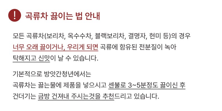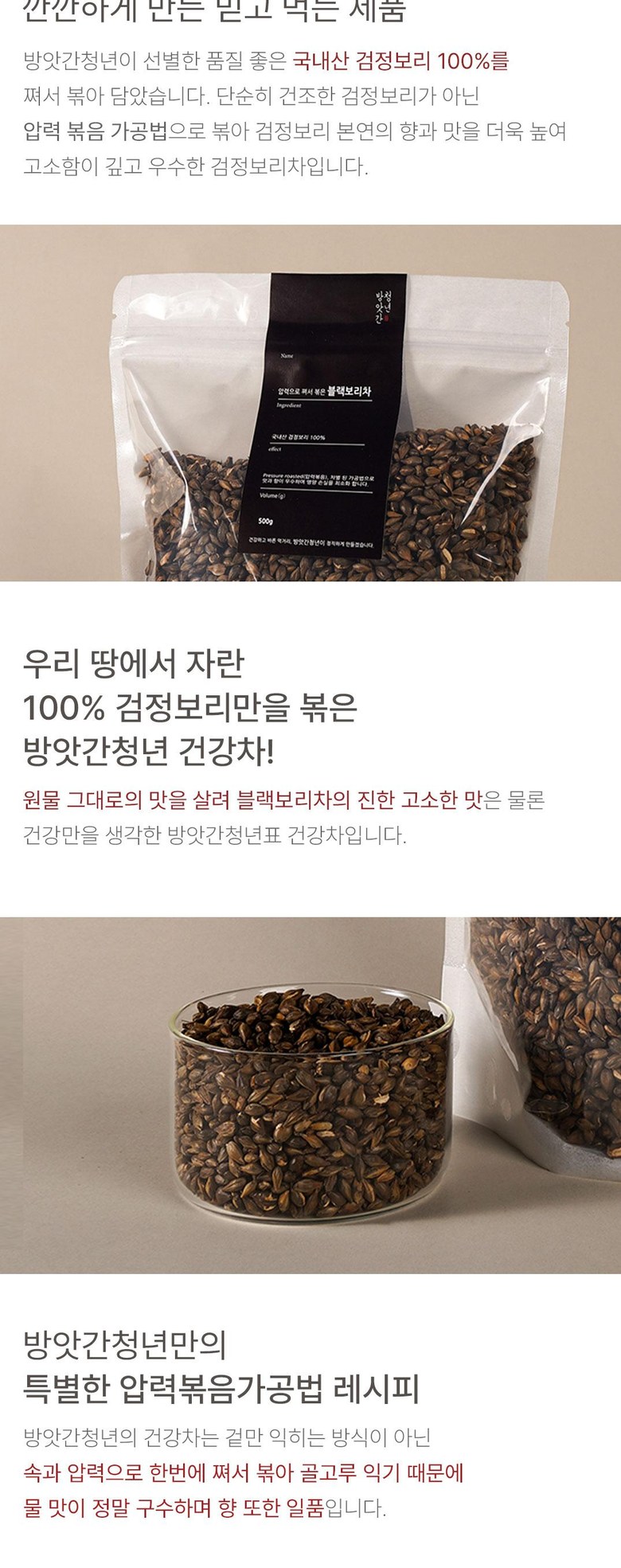 | 제품명 | 압력으로 볶은 블랙보리차 | 식품의 유형 | 침출차 |