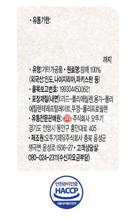 | 제품명 | 옛날 볶음참깨 | 식품의 유형 | 컨텐츠 참조 |
