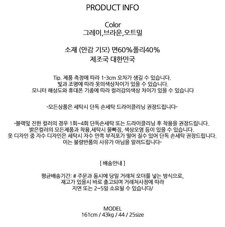 - ㆍ모니터 해상도의 차이로 인해 색상이나 이미지가 실제와 달라, 고객이 단순 변심으로 교환/반품을 무료로 요청하는 경우