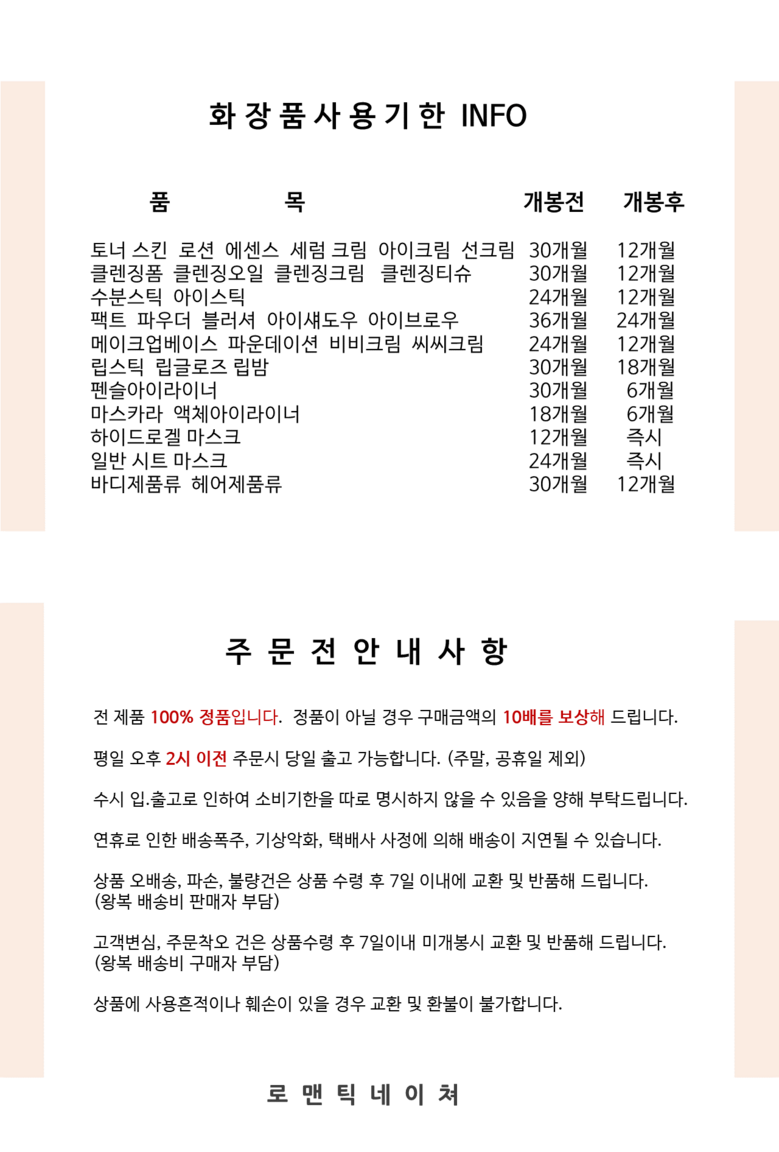 - ㆍ모니터 해상도의 차이로 인해 색상이나 이미지가 실제와 달라, 고객이 단순 변심으로 교환/반품을 무료로 요청하는 경우