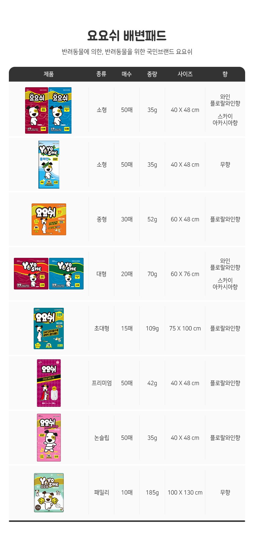 | 품명 및 모델명 | 요요쉬 반려견용 배변패드 스카이 대형 | 인증/허가 사항 | 해당없음 |
