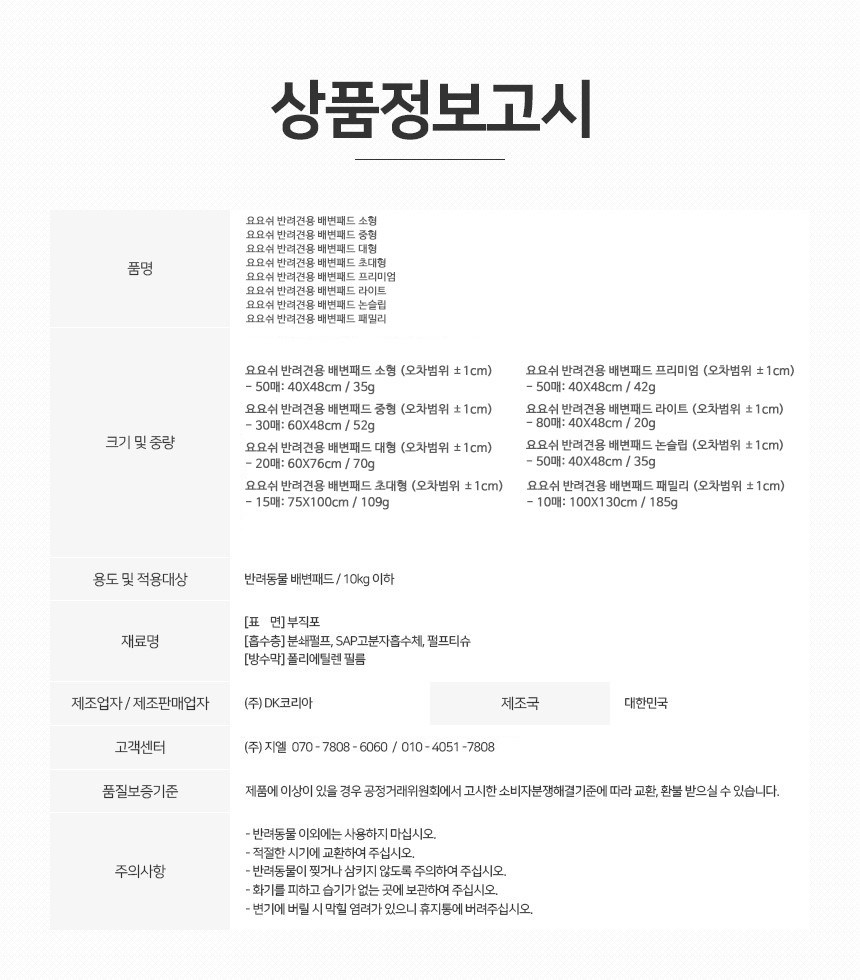 | 제조국(원산지) | 대한민국 | 제조자(수입자) | ㈜DK코리아 |