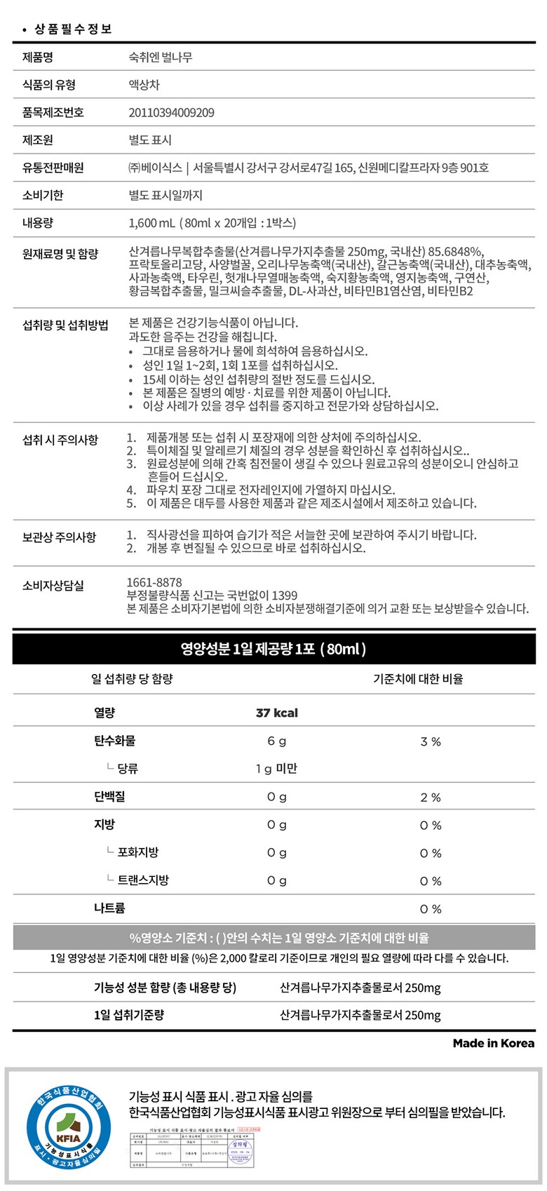 | 원료명 및 함량 | 상품 상세페이지 참조 | 영양정보 | 상품 상세페이지 참조 |