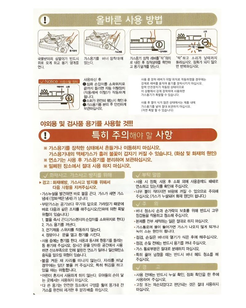 | 품명 및 모델명 | 썬터치 블랑 휴대용 가스렌지 + 전용 케이스 세트 | 인증/허가 사항 | 노720142 |