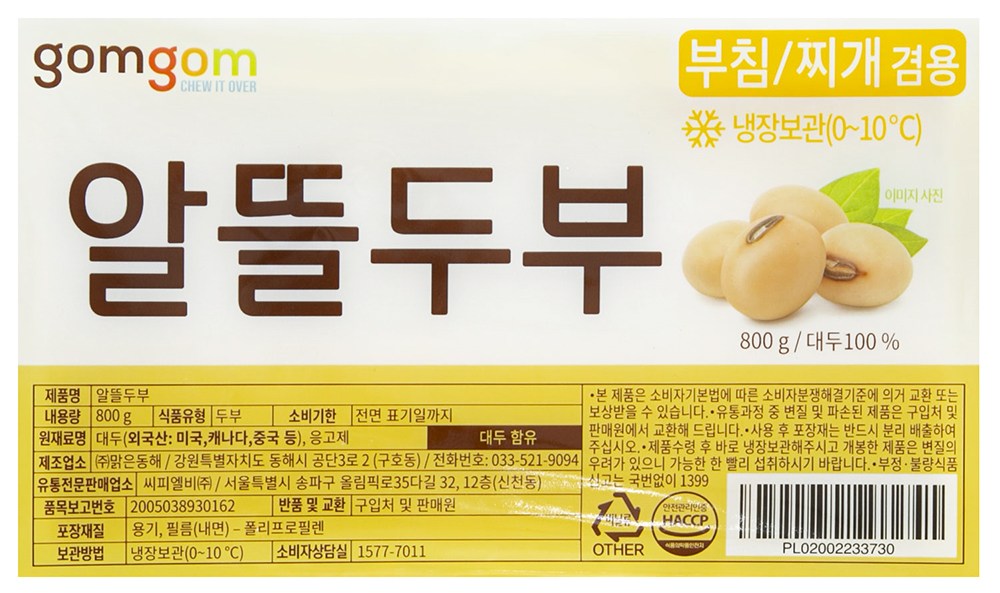 | 제품명 | 알뜰두부 | 식품의 유형 | 컨텐츠 참조 |