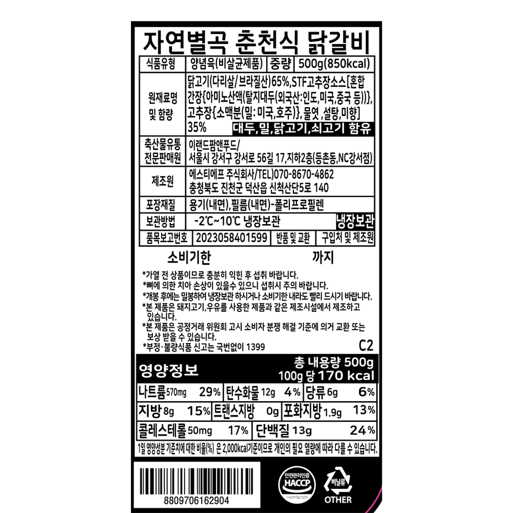 | 제품명 | 자연별곡 춘천식 닭갈비 | 식품의 유형 | 컨텐츠 참조 |