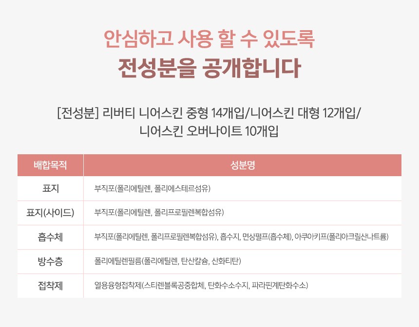 | 품명 및 모델명 | 리버티 니어스킨 대형 | 인증/허가 사항 | 의약외품 |