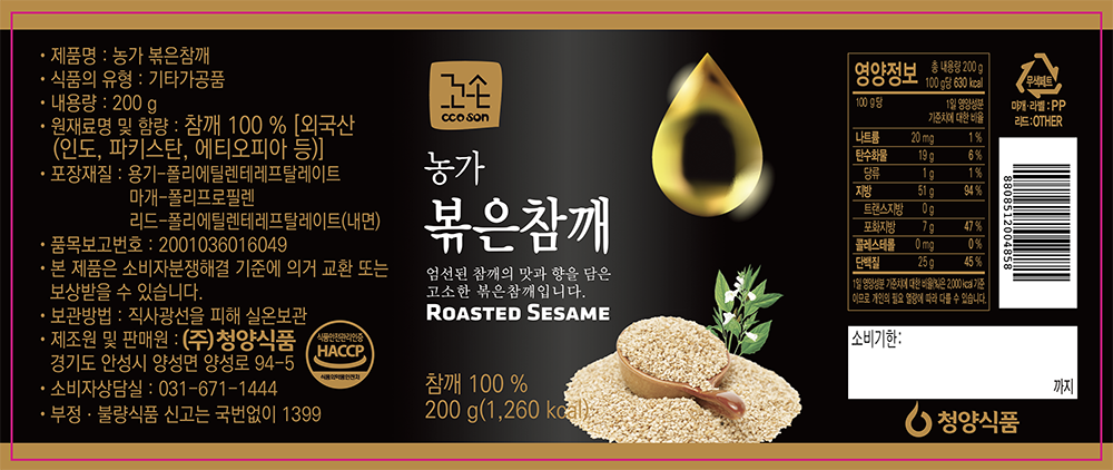 | 제품명 | 농가볶은참깨 | 식품의 유형 | 컨텐츠 참조 |