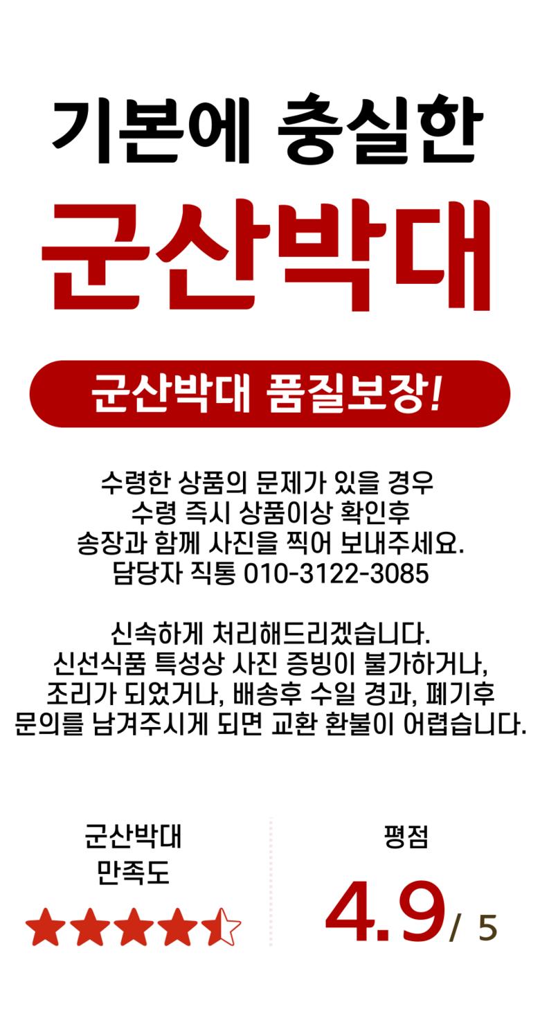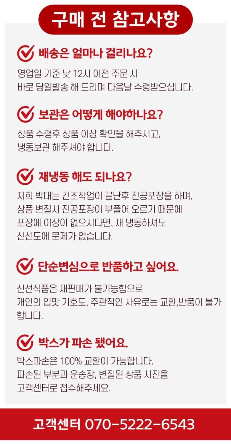 | 배송방법 | 신선/냉장/냉동 | 배송비 | 무료배송 - 도서산간 지역 배송불가 |