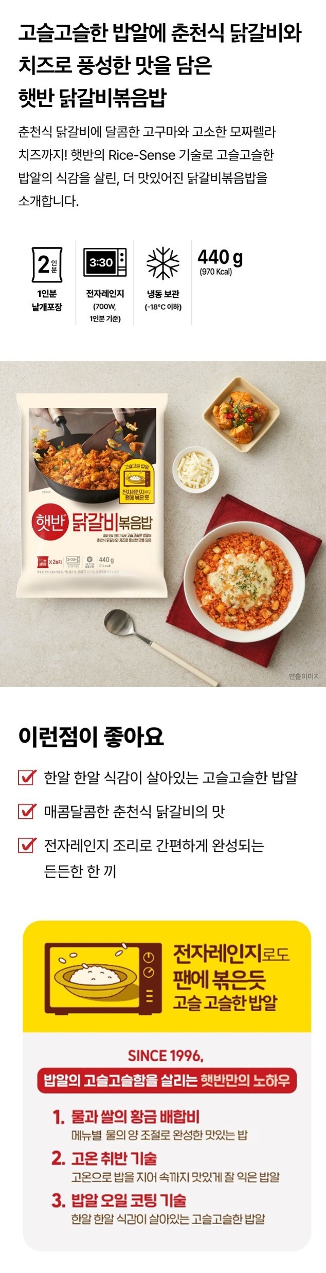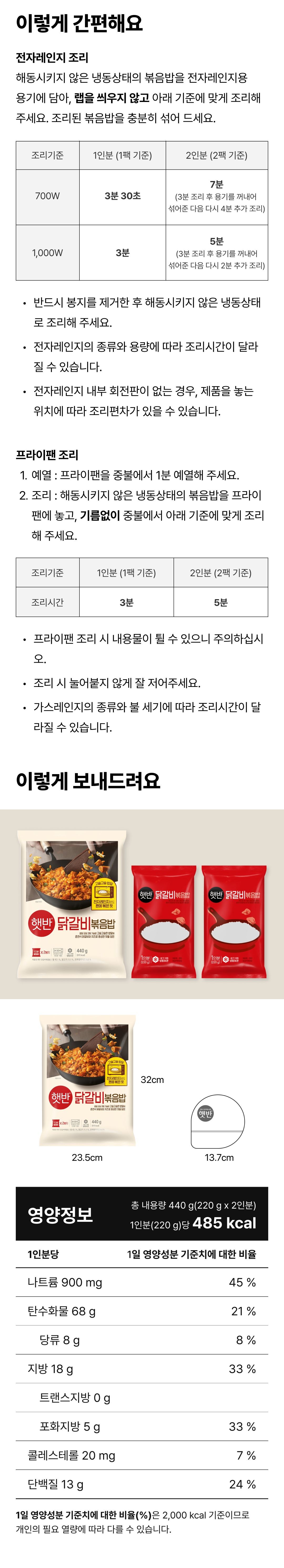 | 제품명 | 햇반 닭갈비볶음밥 | 식품의 유형 | 컨텐츠 참조 |
