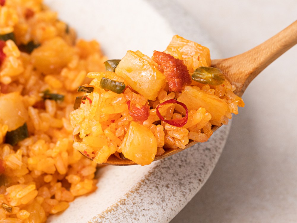 고추장으로 맛으로 내 매콤한 깍두기 베이컨 볶음밥이에요. 아삭아삭 씹히는 깍두기가 일품이지요. 전자레인지 등으로 간편하게 조리하기만 하면 맛깔나는 한 끼가 완성됩니다. 반찬을 따로 준비하지 않아도 알찬 식사를 즐기실 수 있어요.