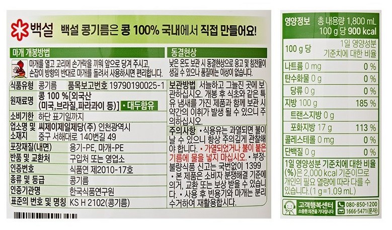 | 제조연월일, 소비기한 또는 품질유지기한 | 상품 상세페이지 참조 | 세부 품목군별 표시사항 | 상품 상세페이지 참조 |
