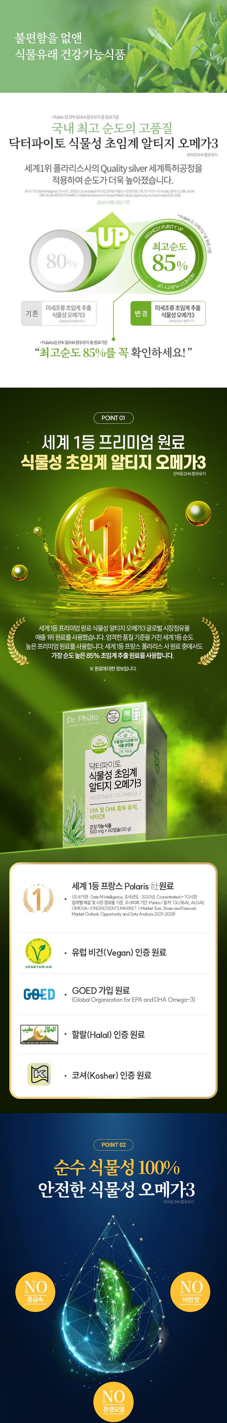 | 제품명 | 닥터파이토 식물성 초임계 알티지 오메가3 | 제조업소의 명칭과 소재지 | (주)노바렉스 2공장 |